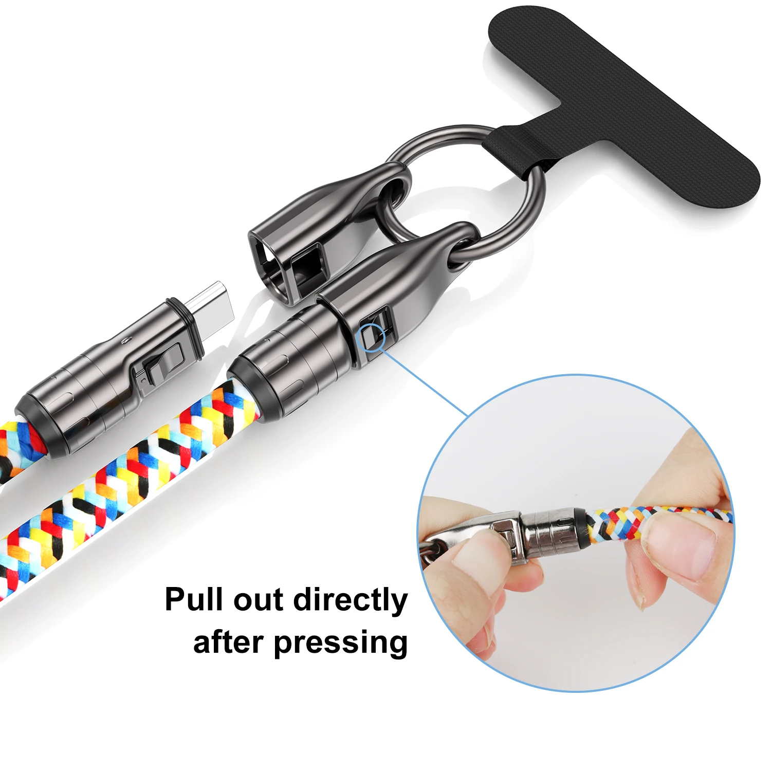Diseño de correa cruzada para el cuello:El diseño 2 en 1 combina un cable de datos de alta calidad con una cómoda correa cruzada para el cuello, manteniendo el cable seguro y accesible mientras viaja.
