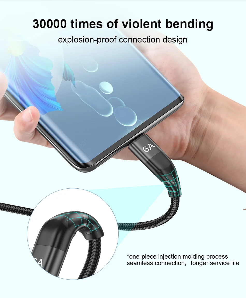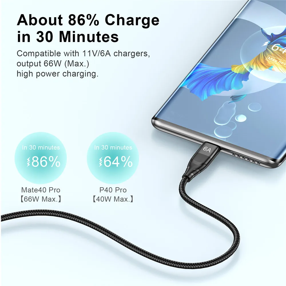 【Cable de carga rápida 6A QC 3.0 66W Tipo C Cables de datos del súper cargador】