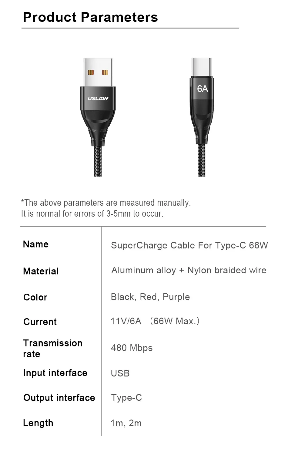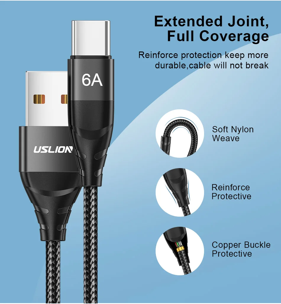 Comprar USLION 66W Cable USB tipo C 6A Cable de carga rápida para Xiaomi mi 13 12 poco f5 datos QC 3,0 Cable USB C para Iphone 15 pro