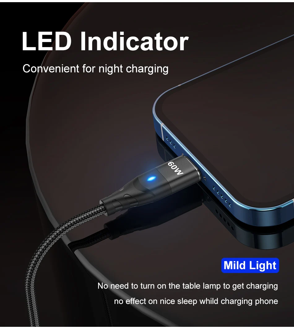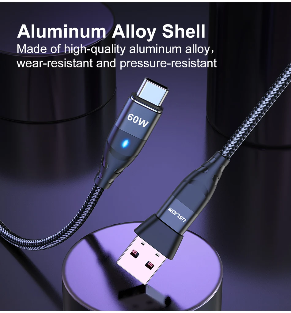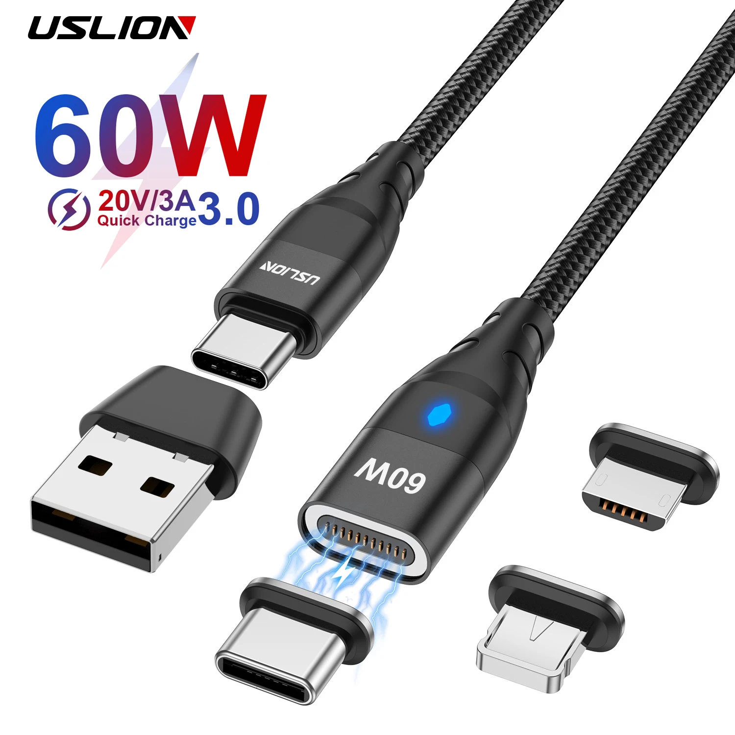 Comprar USLION-Cable de carga rápida PD de 60W, 2 en 1, USB A o C A tipo C, Cable de datos magnético para iPhone 14, 13 Pro Max, Xiaomi 12, Macbook, ordenador portátil