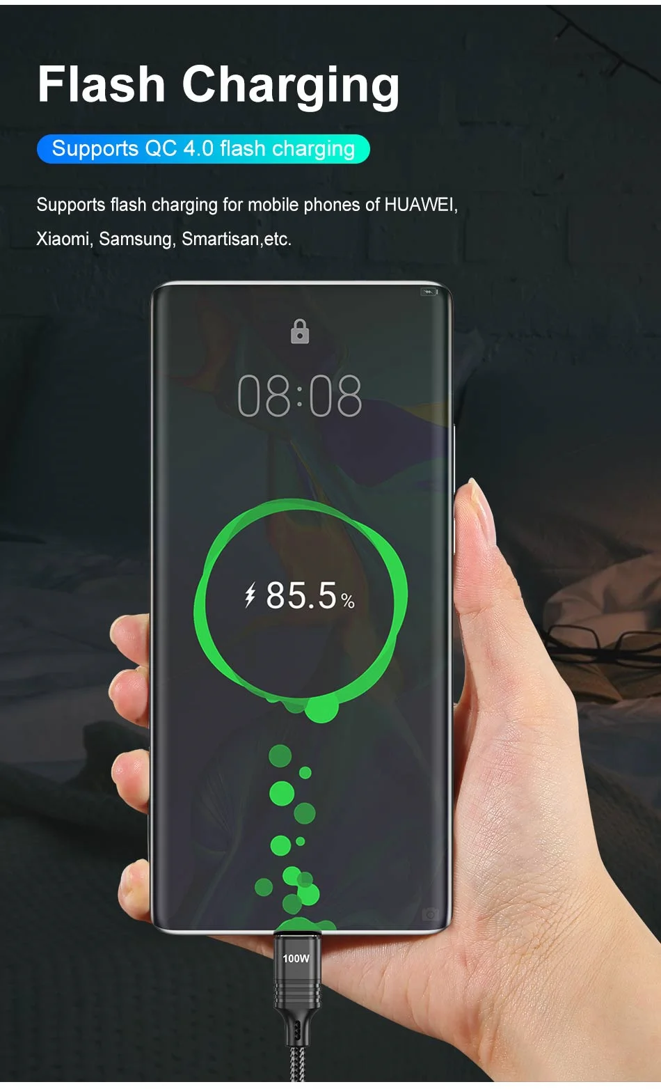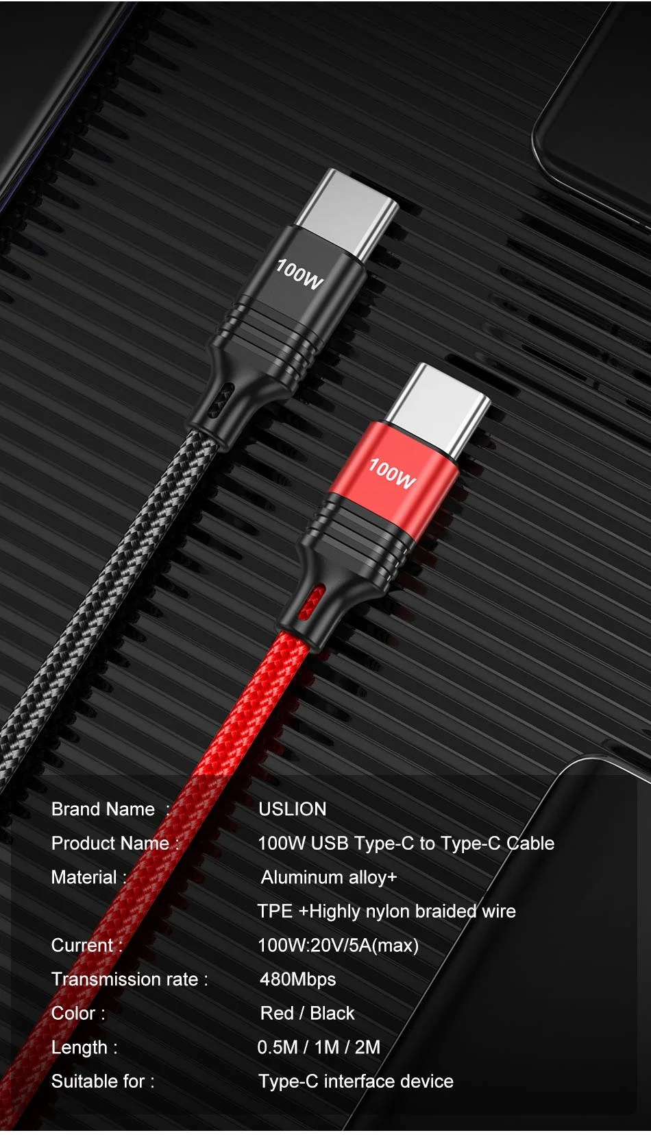 Comprar USLION-Cable de carga rápida tipo C a tipo C para Macbook, Huawei, Xiaomi, POCO f3, Macbook, 100W, PD