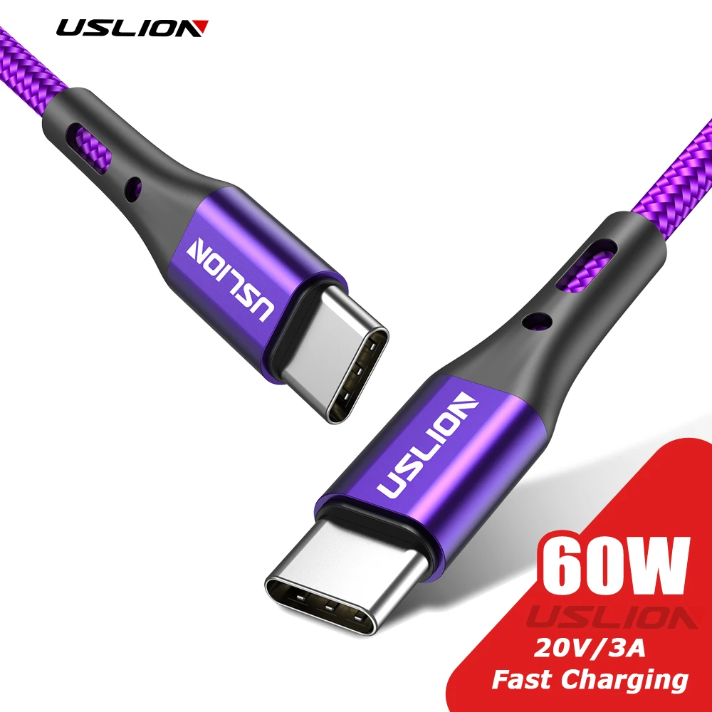 Comprar USLION-Cable de datos de carga rápida PD, 60W, USB C a tipo C, QC 3,0, para Macbook, Xiaomi 12, POCO, M5, X4, Samsung S22, Oneplus 10