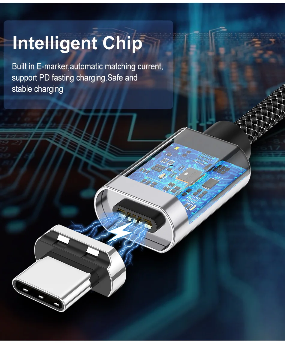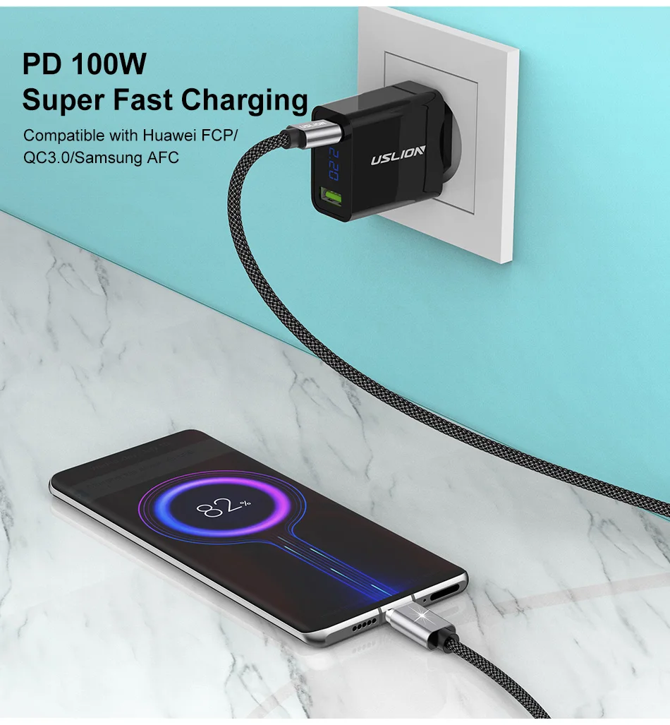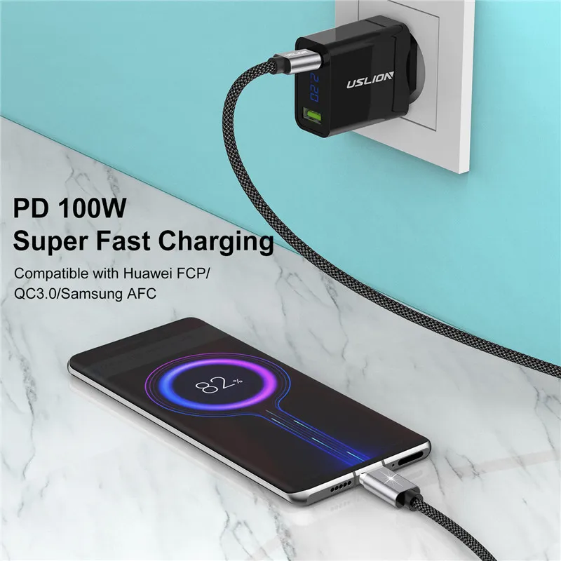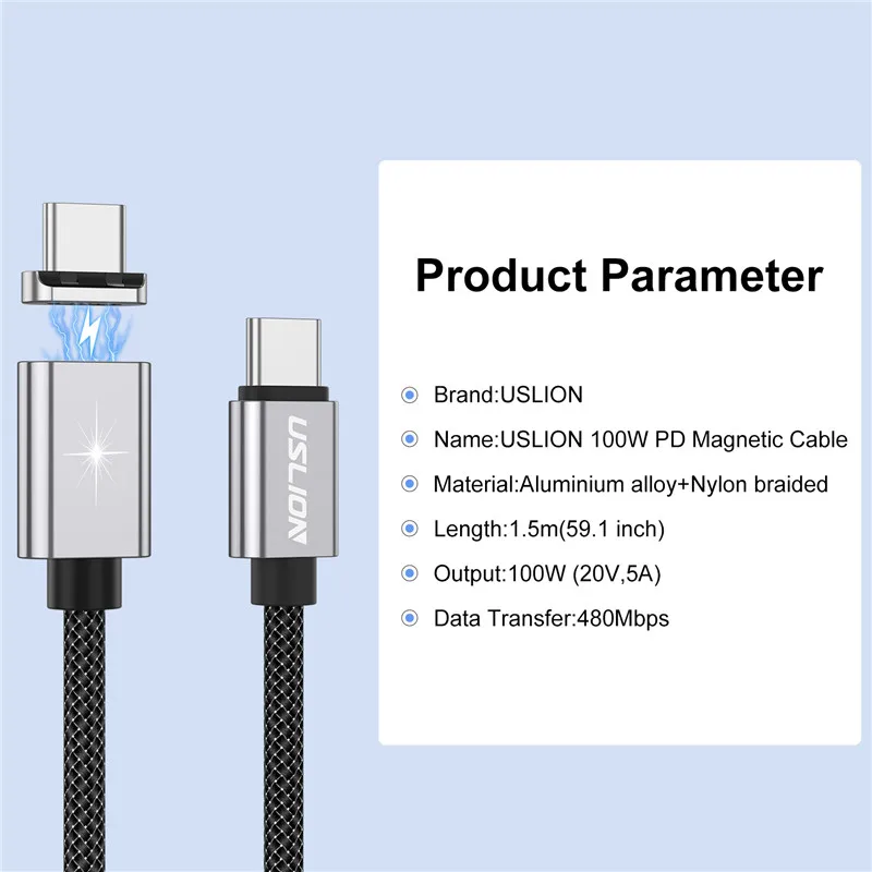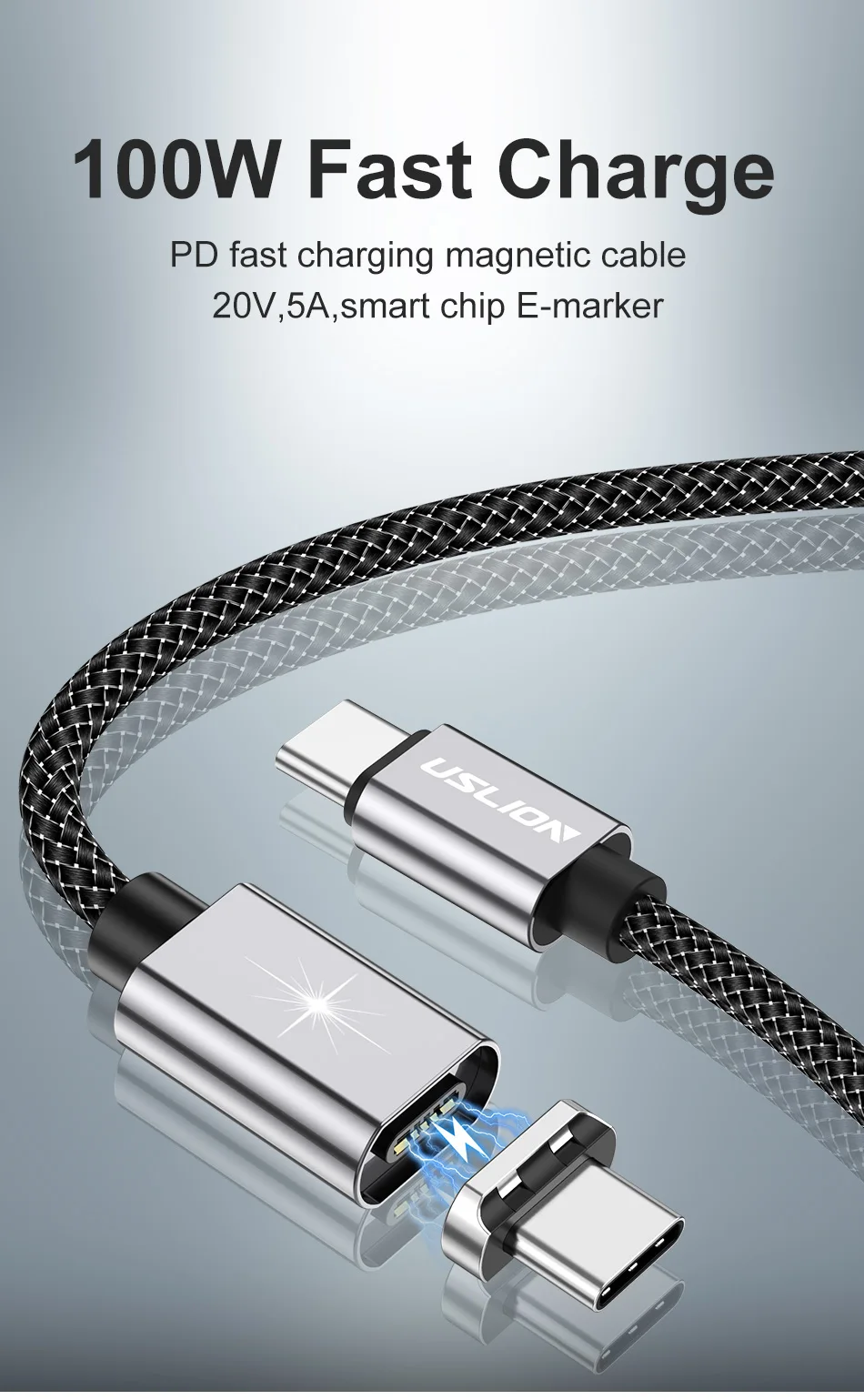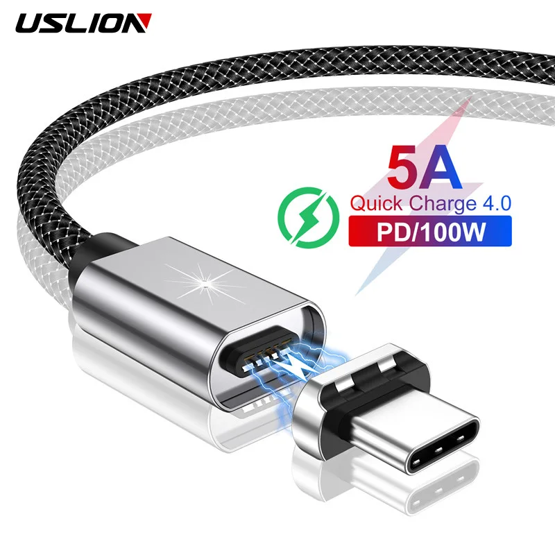 Comprar USLION-Cable de datos magnético PD 100W, 5A, QC 4,0, USB tipo C, Cable de carga rápida para iPad, ordenador portátil, iPhone 13 Pro Max, Samsung, Xiaomi 12