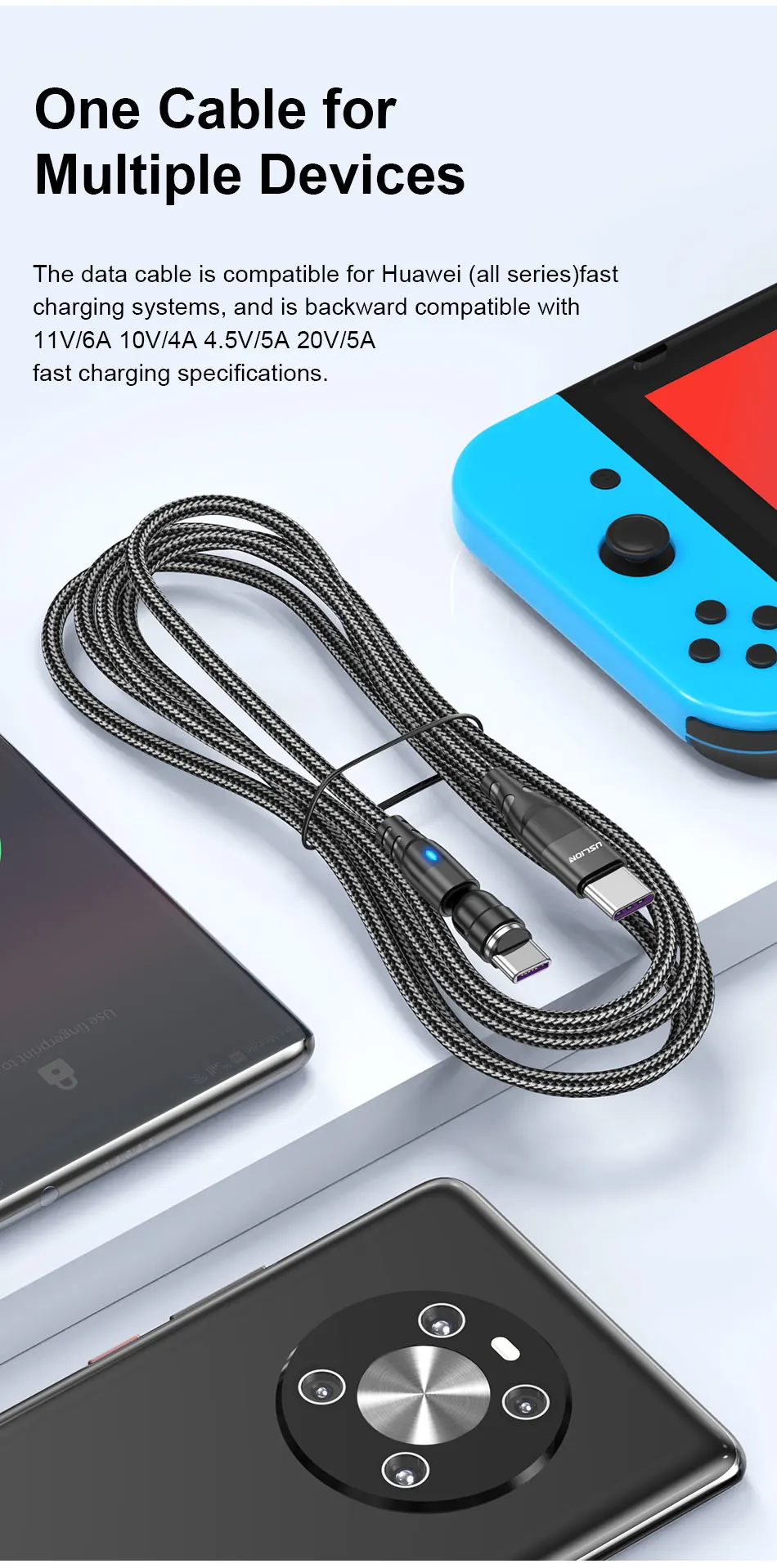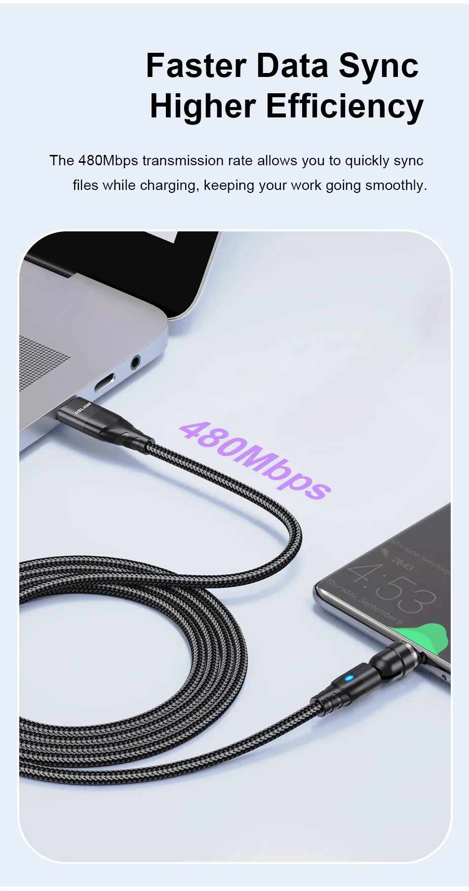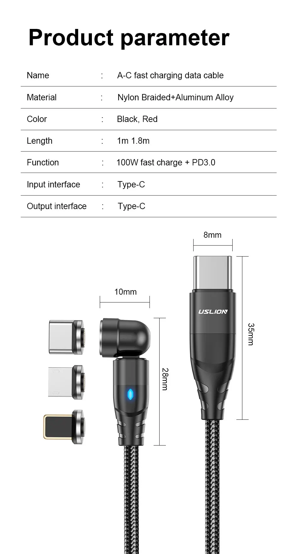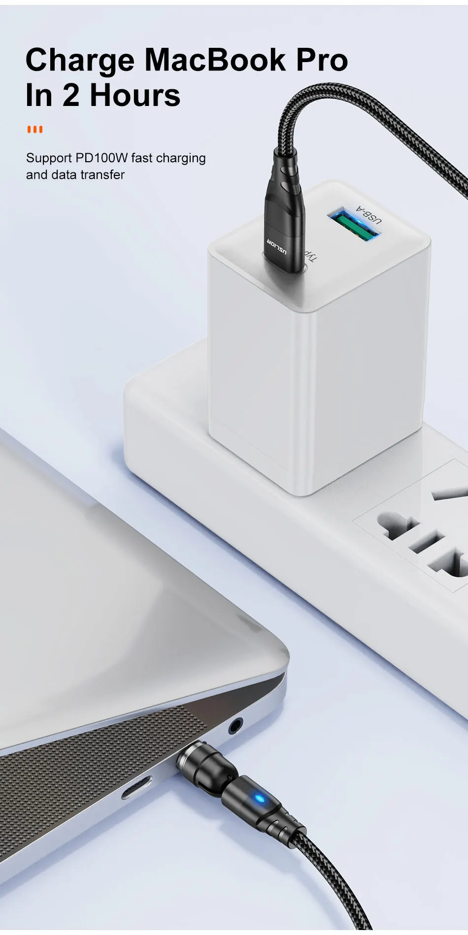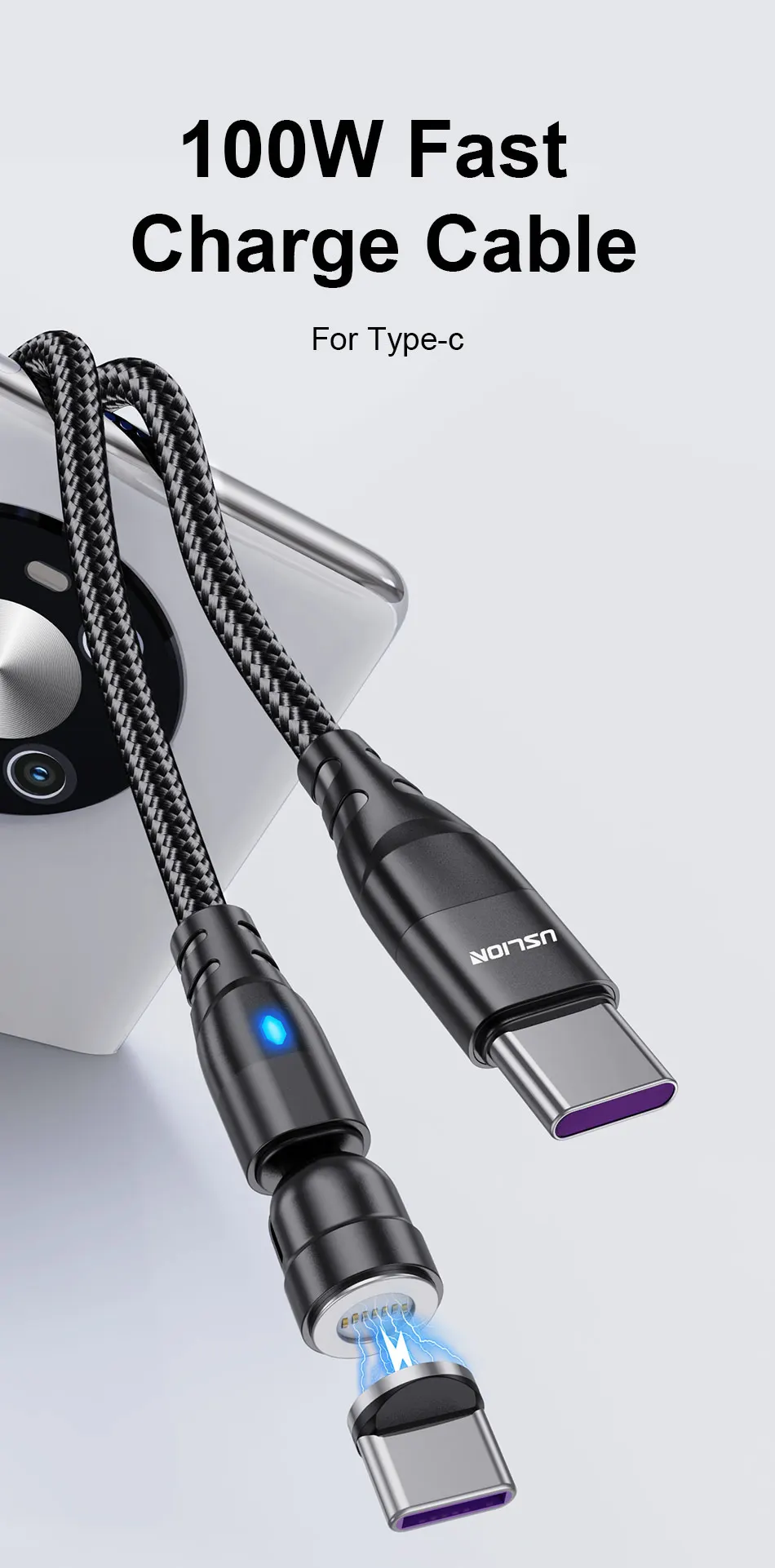 Comprar USLION-Cable magnético de carga rápida 5A 100W, Cable de datos USB tipo C para Macbook, iPad, iPhone 15, 14 Pro Max, Samsung, Xiaomi 14