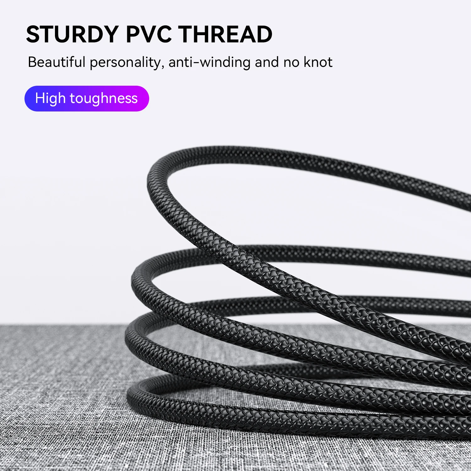 Cable de PVC de diseño moderno, compatibilidad perfecta con teléfono/almohadilla, diseño de peldaño de escalera, ultra duradero, tacto suave y más fuerte. La cabeza del cable de carga utiliza material de aleación de aluminio oxidado, no se oxida y puede reducir la resistencia, hace que el enchufe sea duradero y no se deforme.
