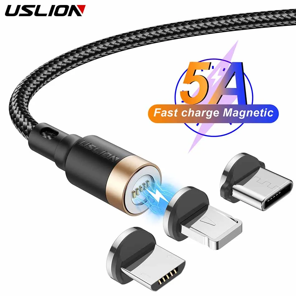 Comprar USLION-Cable magnético de carga rápida para teléfono móvil, Cable Micro tipo C para iPhone 14, Xiaomi y Huawei, 5A