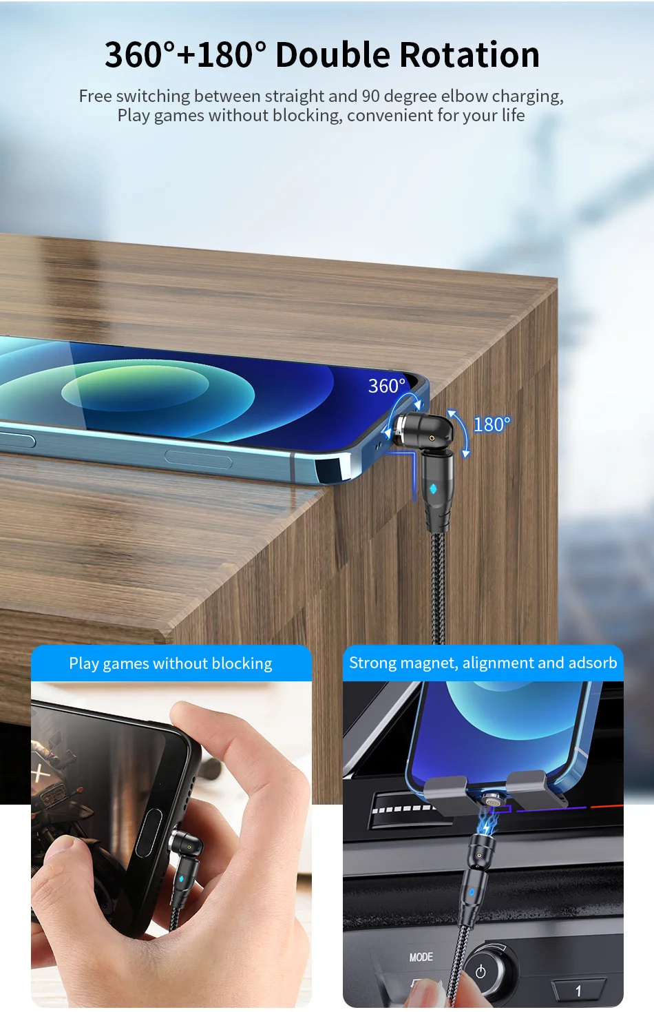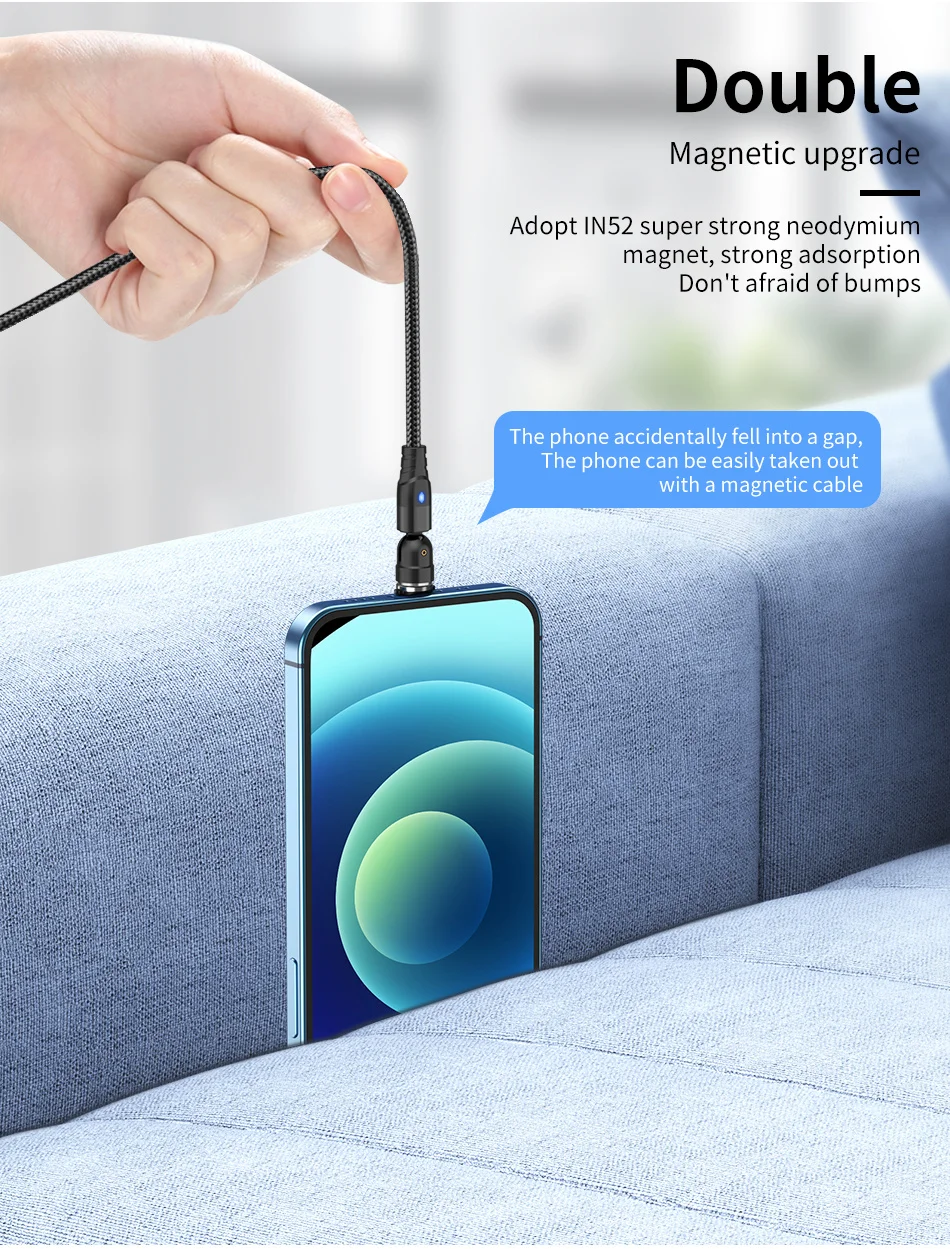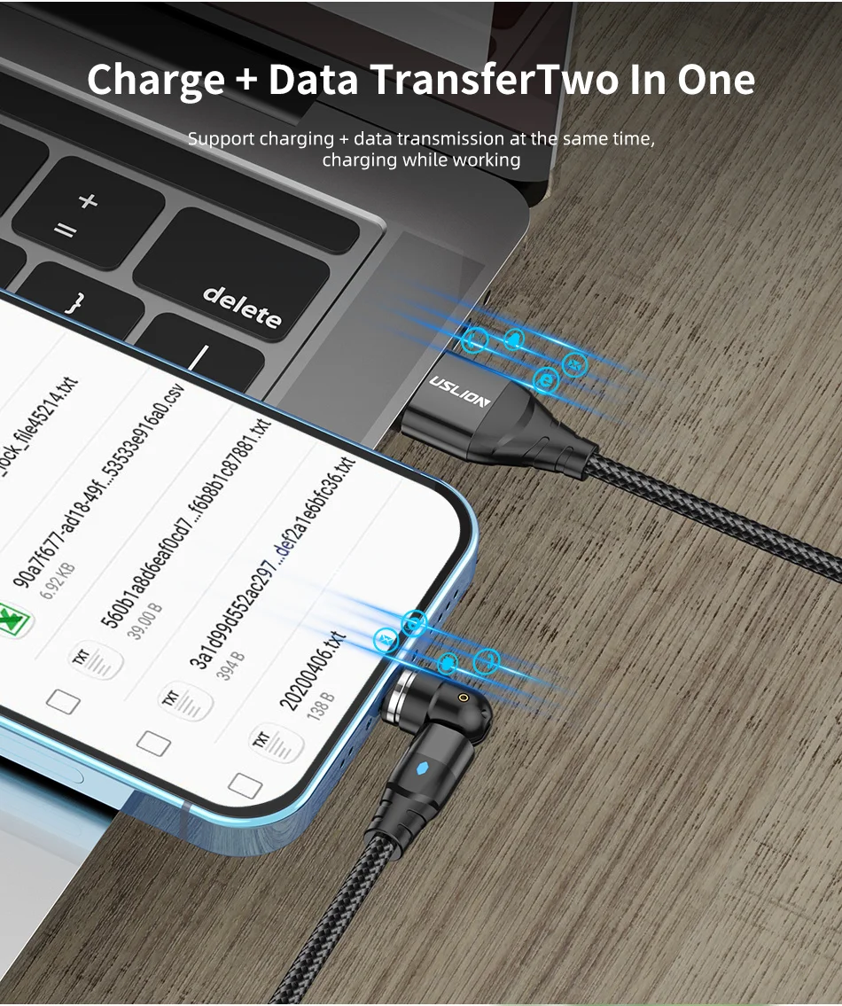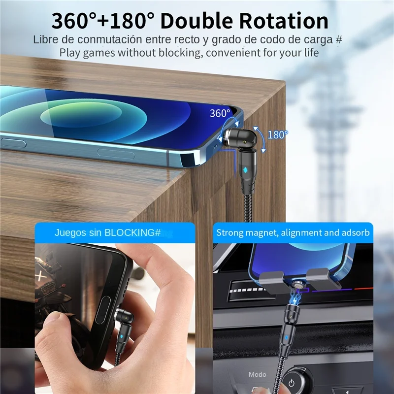 Comprar USLION-Cable magnético de carga rápida para teléfono móvil, cargador magnético con giro de 540 grados, Cable Micro tipo C para iPhone y Xiaomi