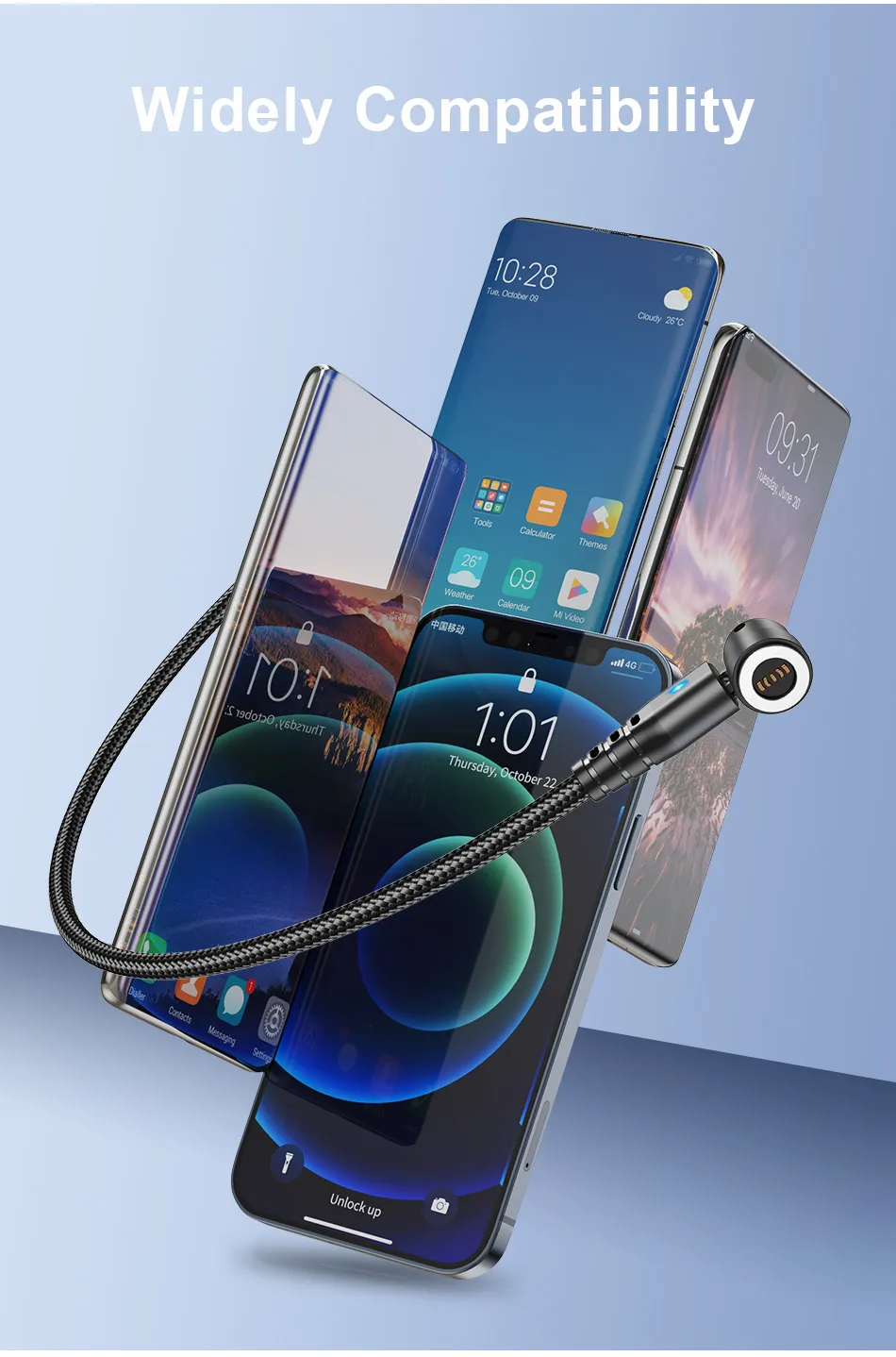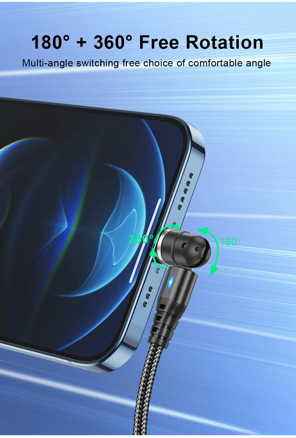 USLION-Cable magnético de carga rápida tipo C, micro USB, Cable de datos de teléfono para iPhone 14, 13 Pro Max, 12 Xiaomi, POCO Redmi, 5A, rotación 540