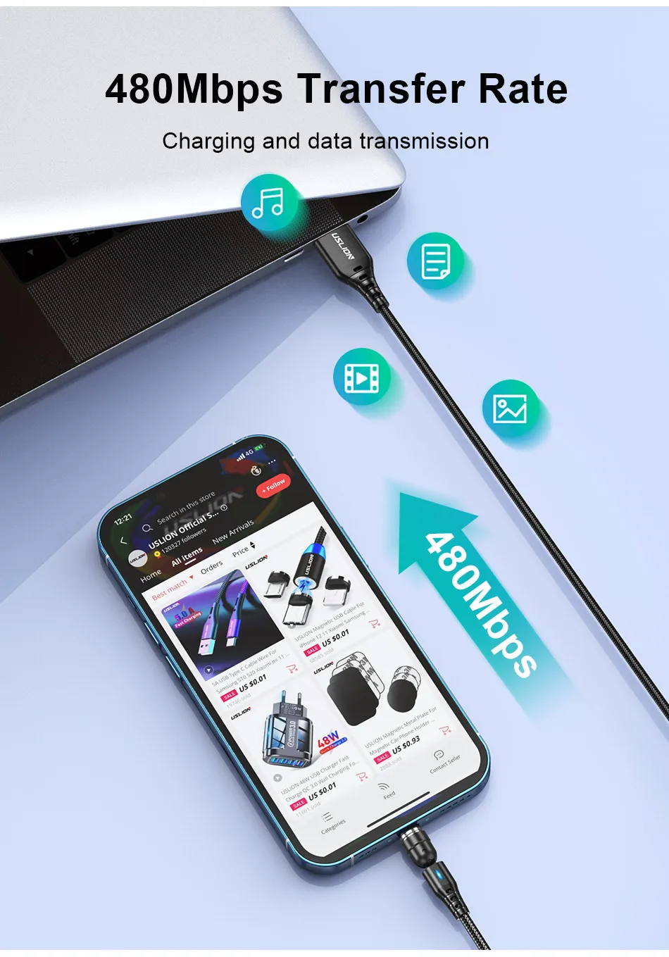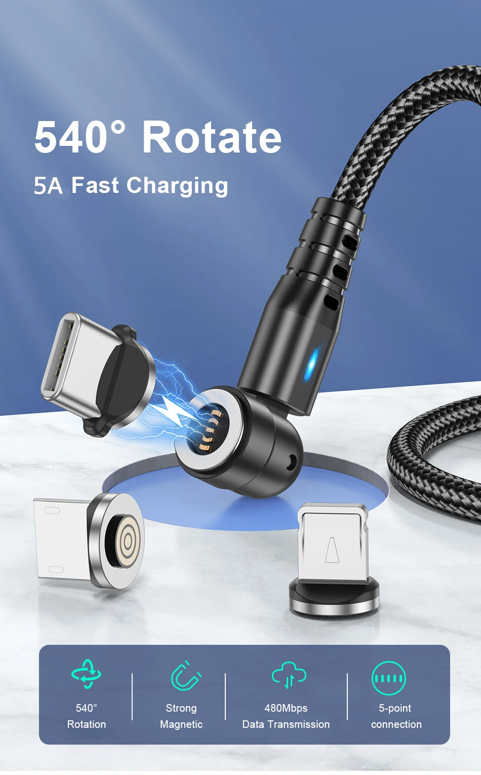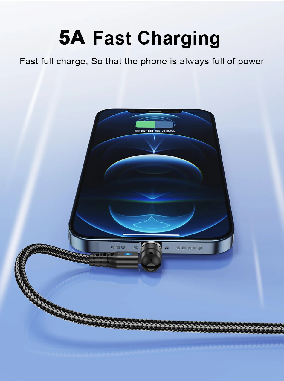 Comprar USLION-Cable magnético de carga rápida tipo C, micro USB, Cable de datos de teléfono para iPhone 14, 13 Pro Max, 12 Xiaomi, POCO Redmi, 5A, rotación 540