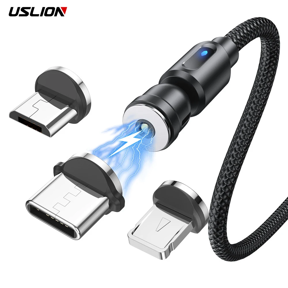 Comprar USLION-Cable magnético giratorio 540, Cable USB de carga rápida tipo C para Xiaomi, Cable Micro USB de carga magnética, Cable de datos para teléfono móvil