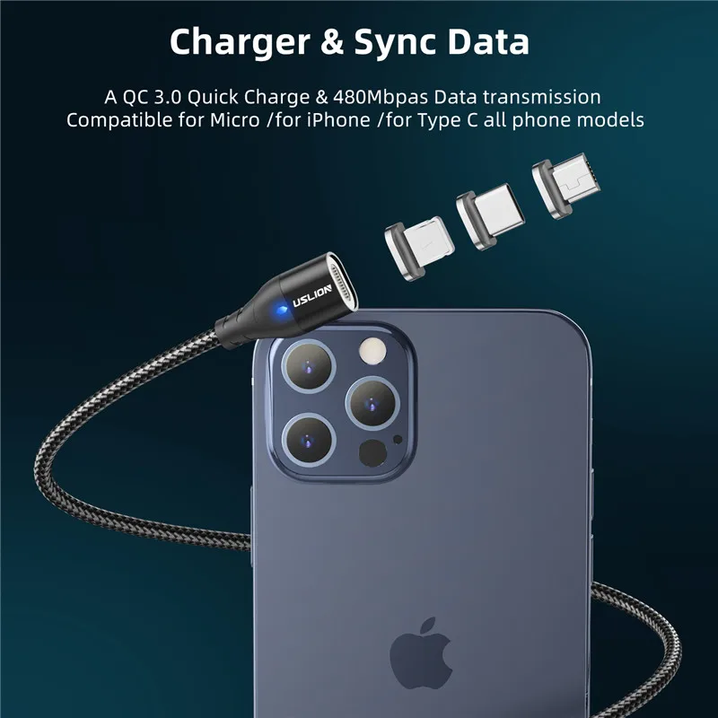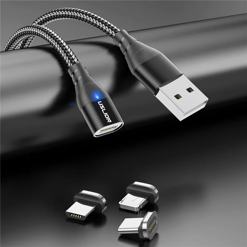 Comprar USLION-Cable magnético LED de carga rápida, Micro USB a tipo C 3A, rotación 540, para iPhone 11 Pro, XS Max, Samsung y Huawei, novedad de 2020