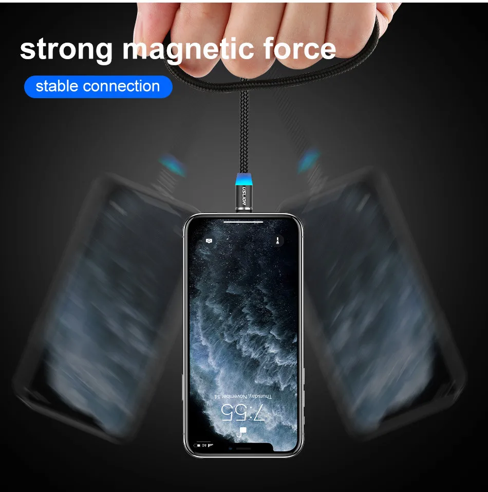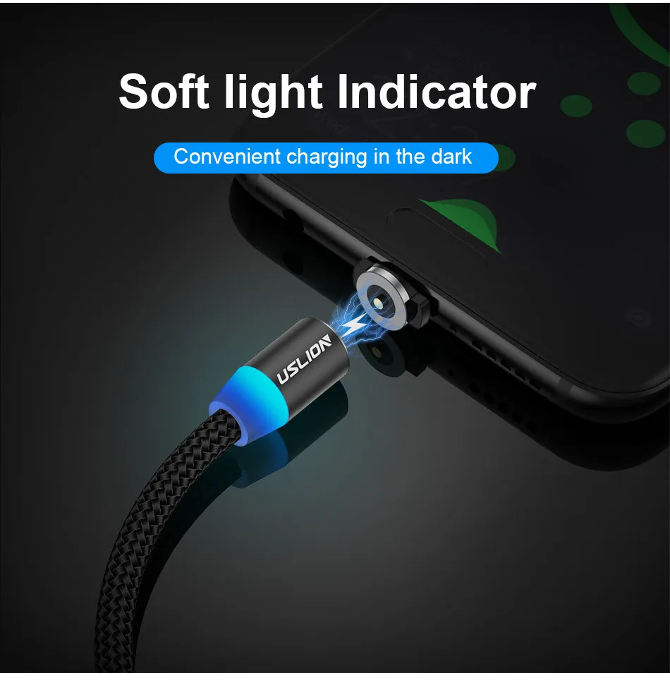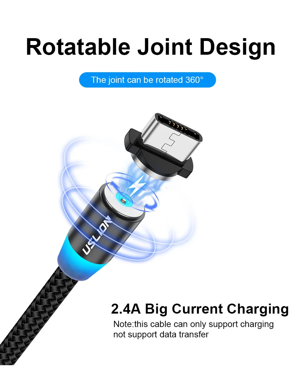 USLION-Cable magnético USB de carga rápida, cable tipo C, cargador magnético, carga de datos, cable micro USB, cable de teléfono móvil, cable USB