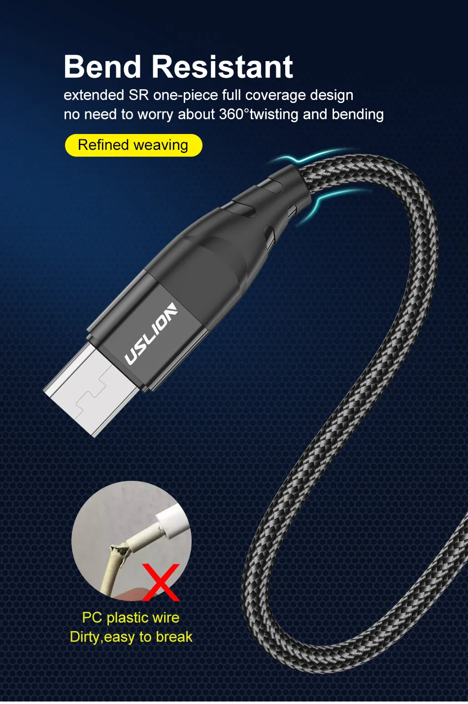No es fácil de romper, cuerda antitracción, antiflexión, resistente al desgaste.