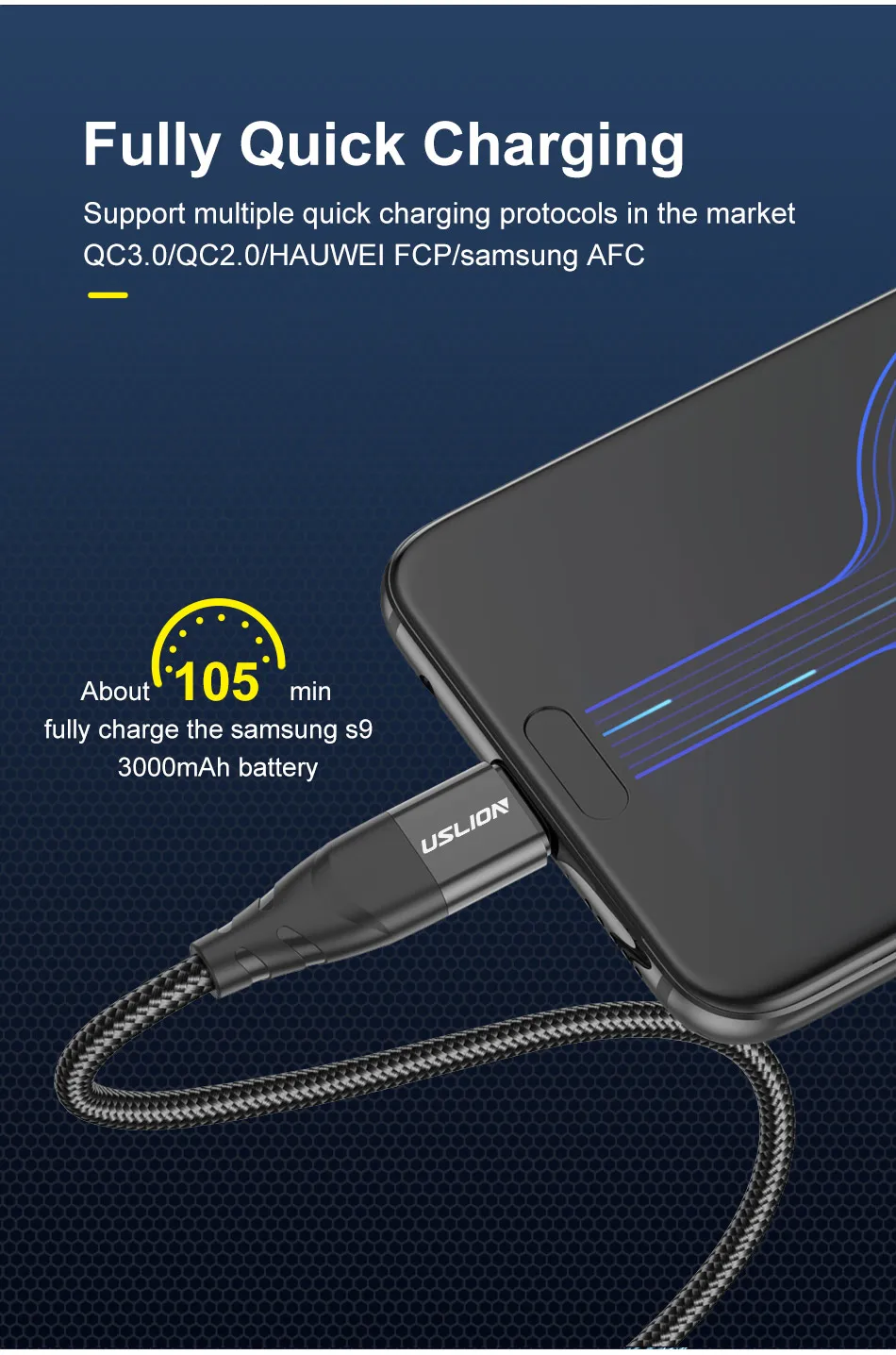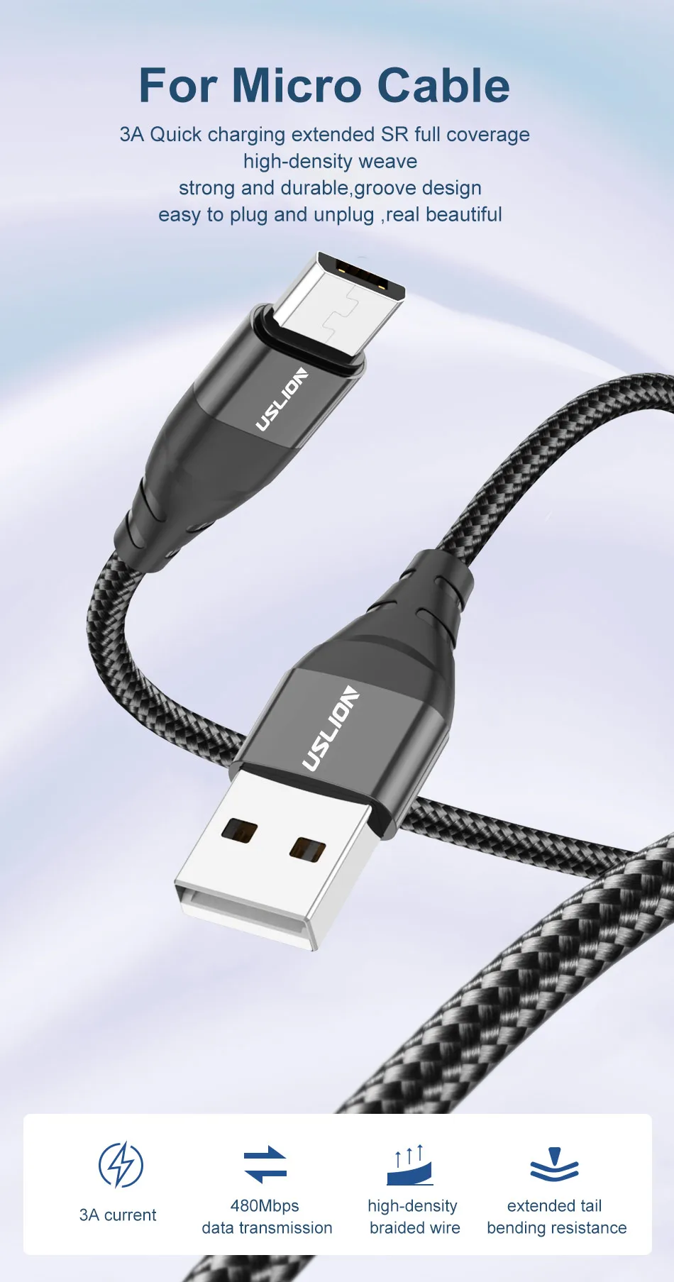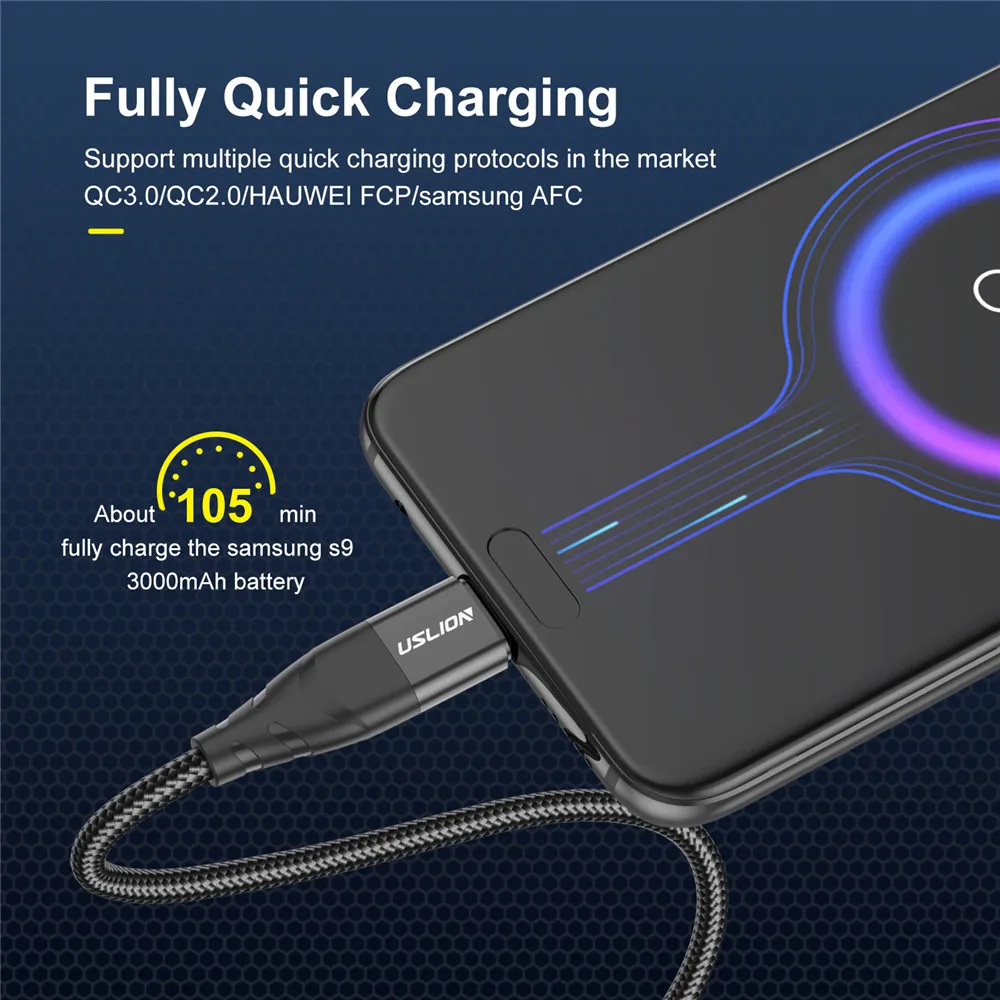 Comprar USLION-Cable Micro USB 3A de carga rápida para teléfono móvil Xiaomi, Cable USB de carga rápida, Cable cargador de datos, Cable Micro USB