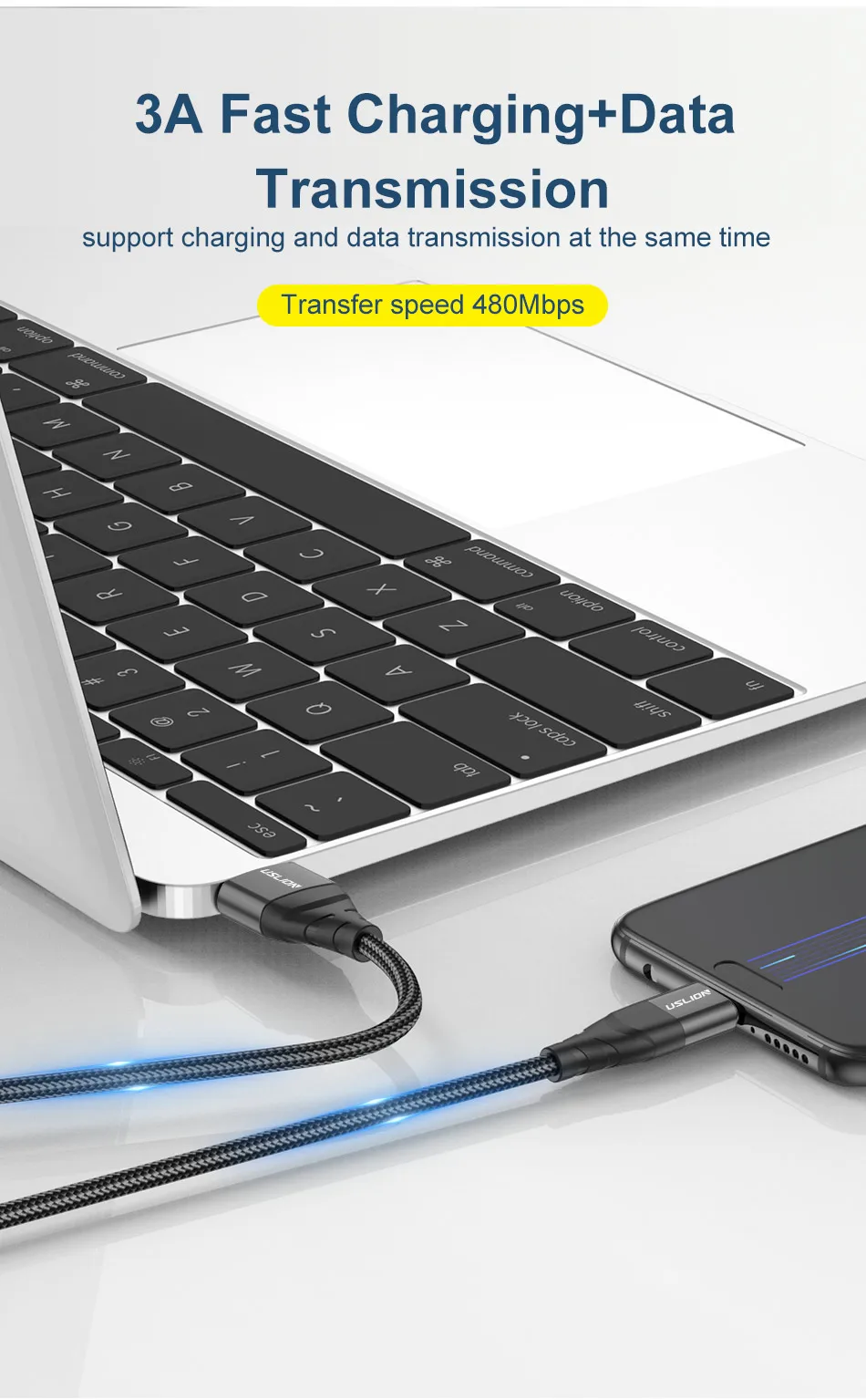 【 Transmisión de datos Mpbs 480 + carga rápida 3A 】