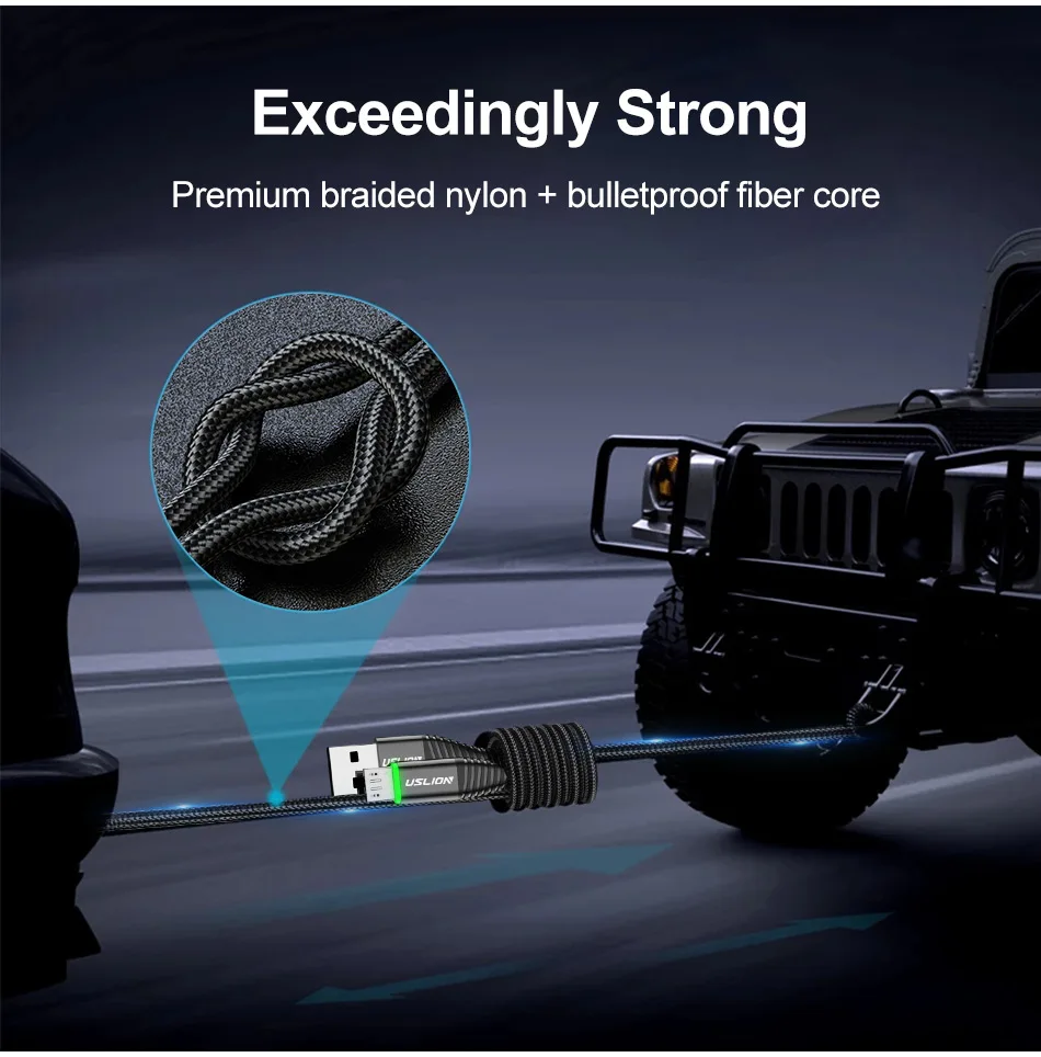 USLION-Cable Micro USB de iluminación LED, Cable de transferencia de datos, cargador de carga rápida 3A para Samsung, Xiaomi, Android, Cable de teléfono Micro USB