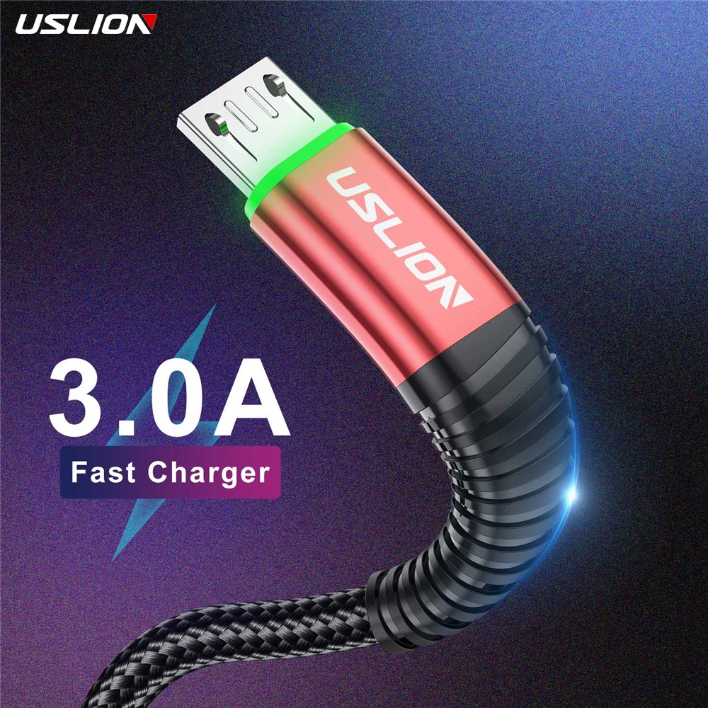 Comprar USLION-Cable Micro USB de iluminación LED, Cable de transferencia de datos, cargador de carga rápida 3A para Samsung, Xiaomi, Android, Cable de teléfono Micro USB