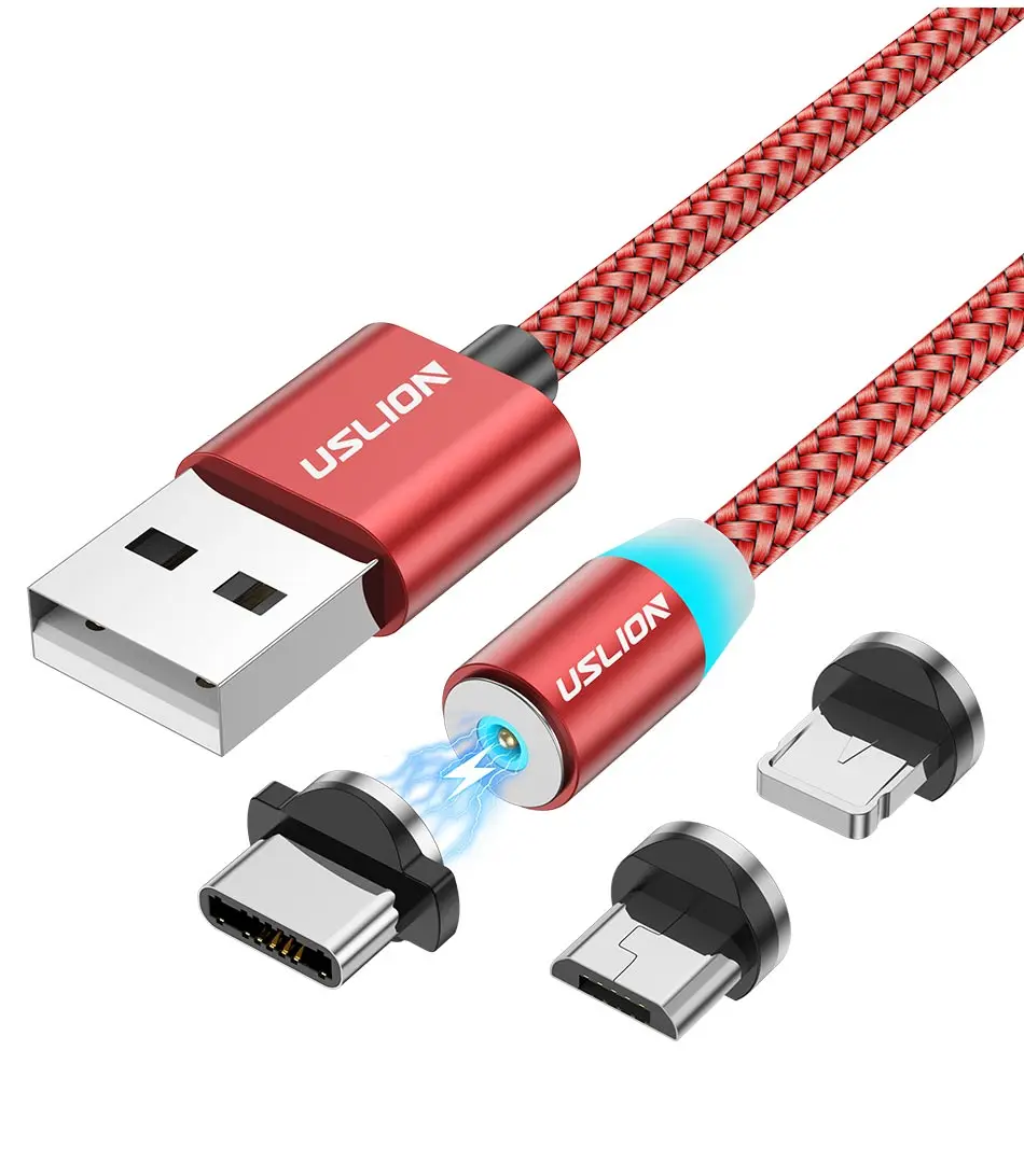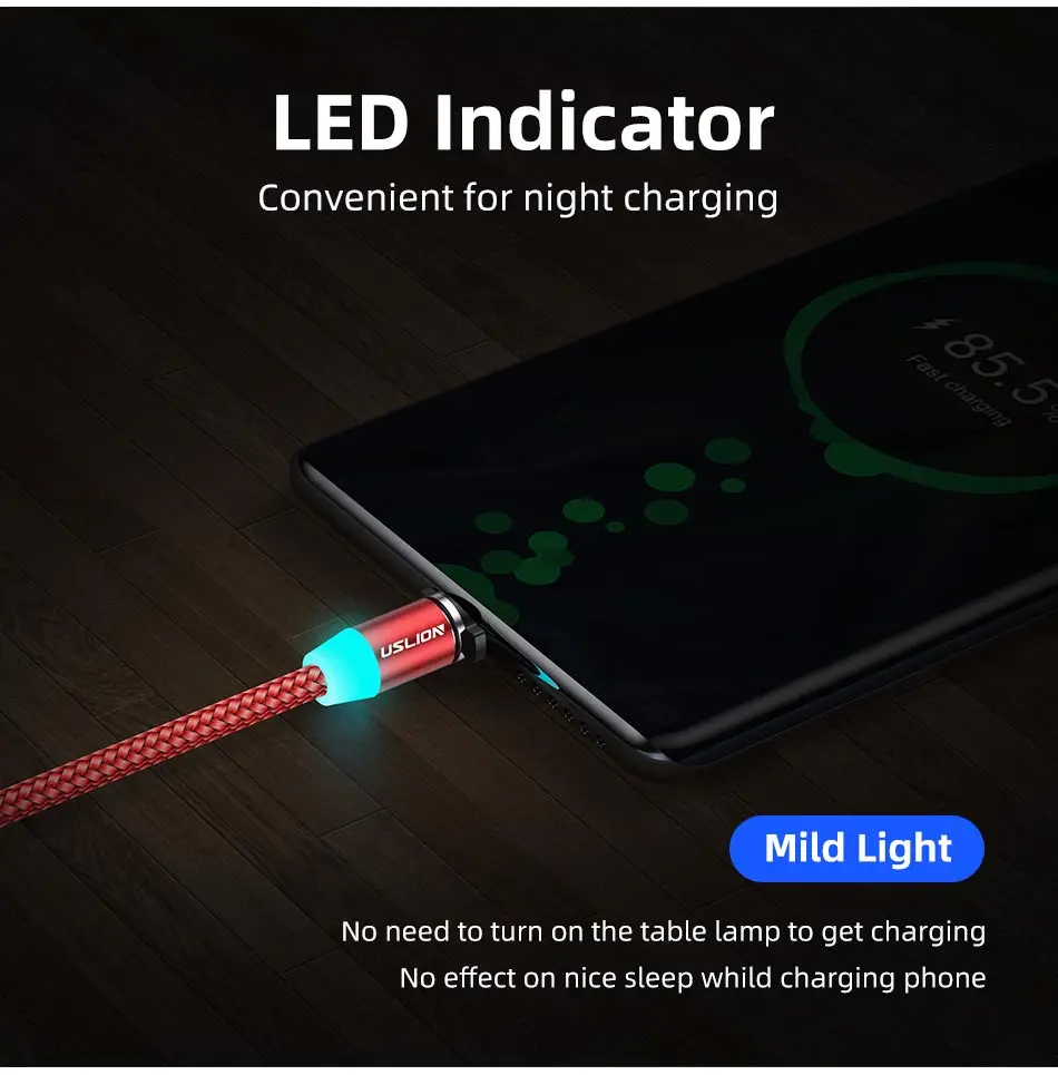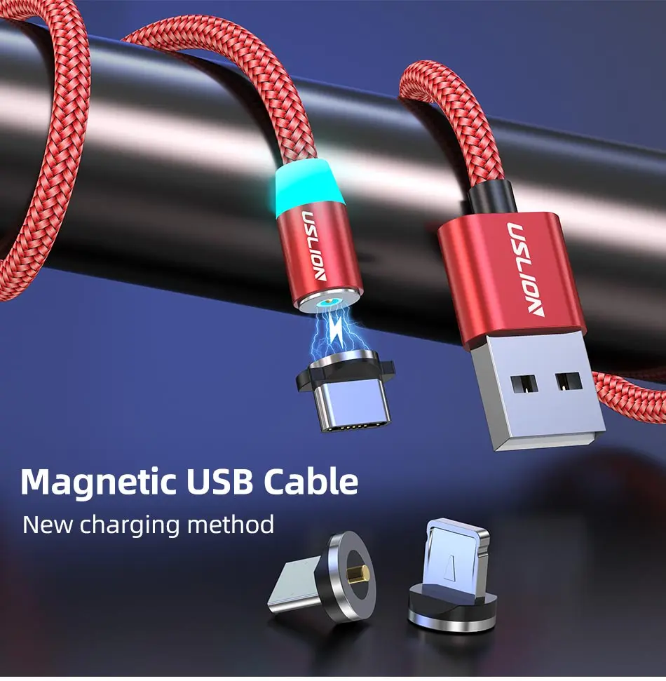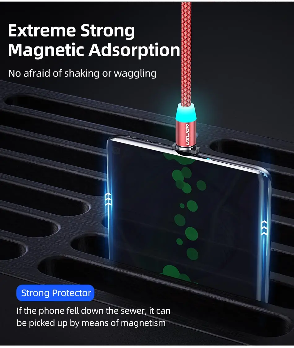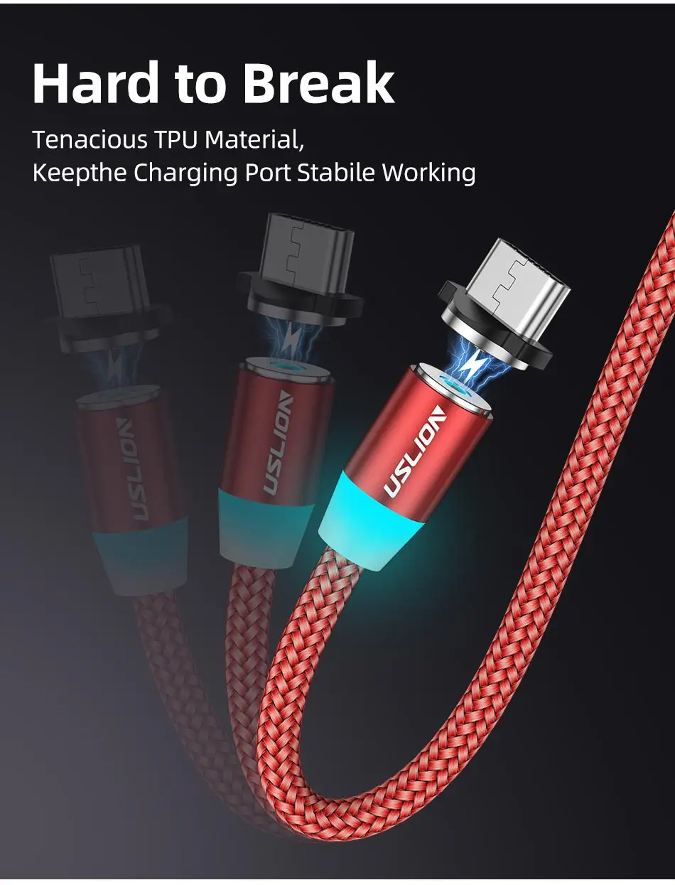 Comprar USLION-Cable Micro USB magnético de 3M para teléfono móvil Samsung Android, carga tipo c para iPhone 14 13 12, Cable cargador magnético