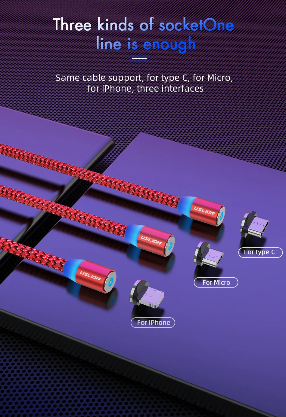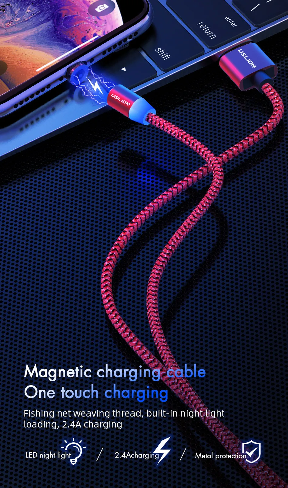 Comprar USLION-Cable Micro USB magnético de carga rápida, Cable USB tipo C, cargador magnético, Cable de carga de datos para Iphone 7, Samsung, Xiaomi