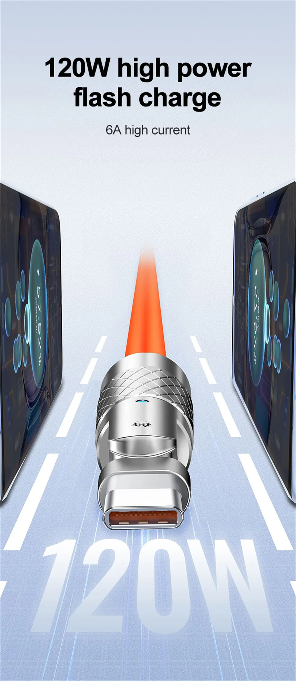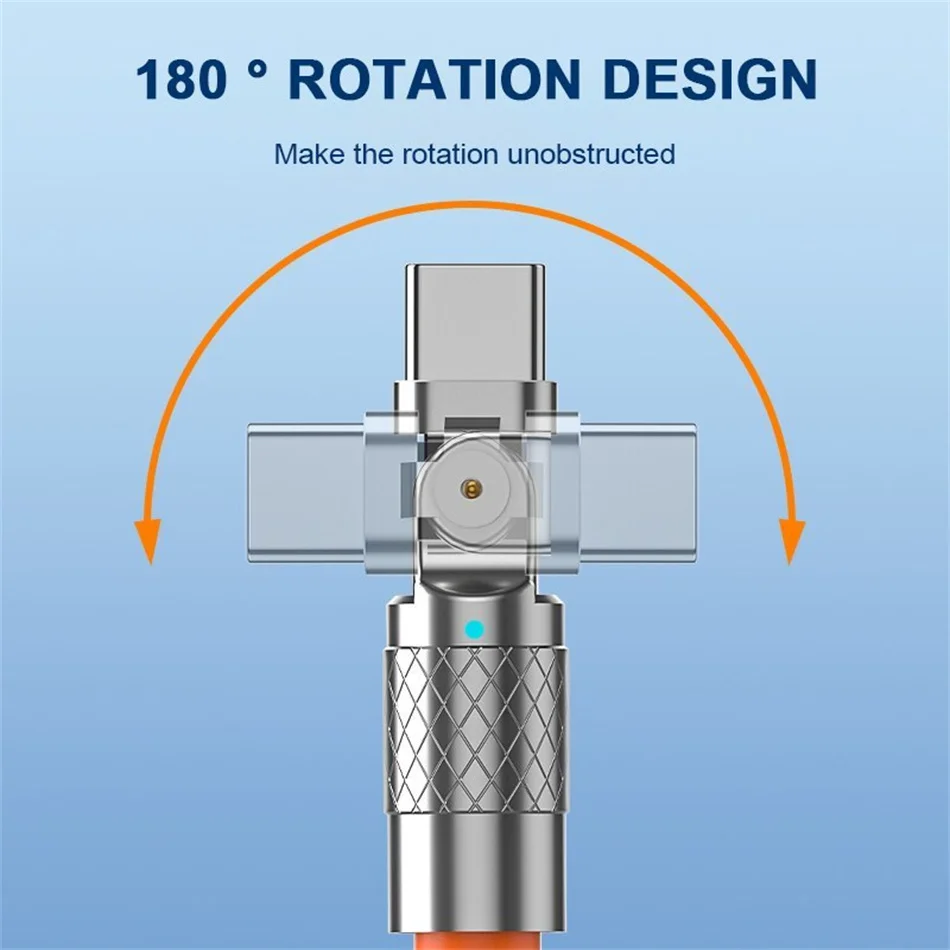 Comprar USLION-Cable tipo C de carga rápida para móvil, Cable de silicona alargada, giratorio 120, de aleación de Zinc, 6A, 180 W, para Xiaomi, Samsung, Huawei