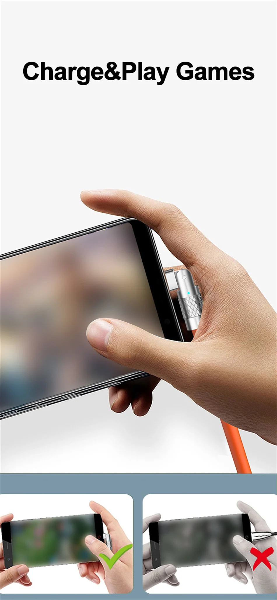 El conector flexible y el diseño giratorio único de 180 grados reducen el riesgo de seguridad causado por daños en el cable de carga. Conveniente y práctico para cargar de forma rápida y segura durante cualquier uso.