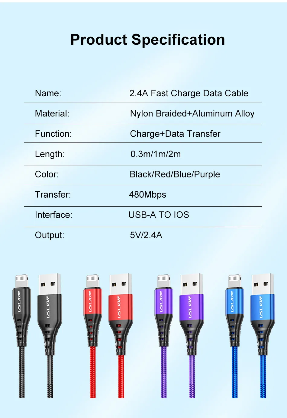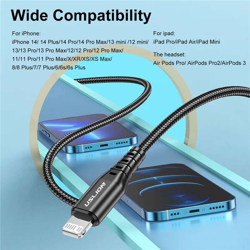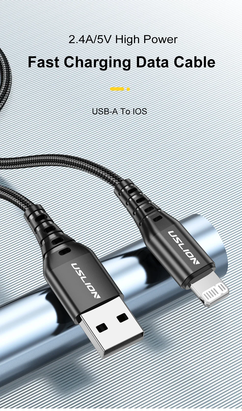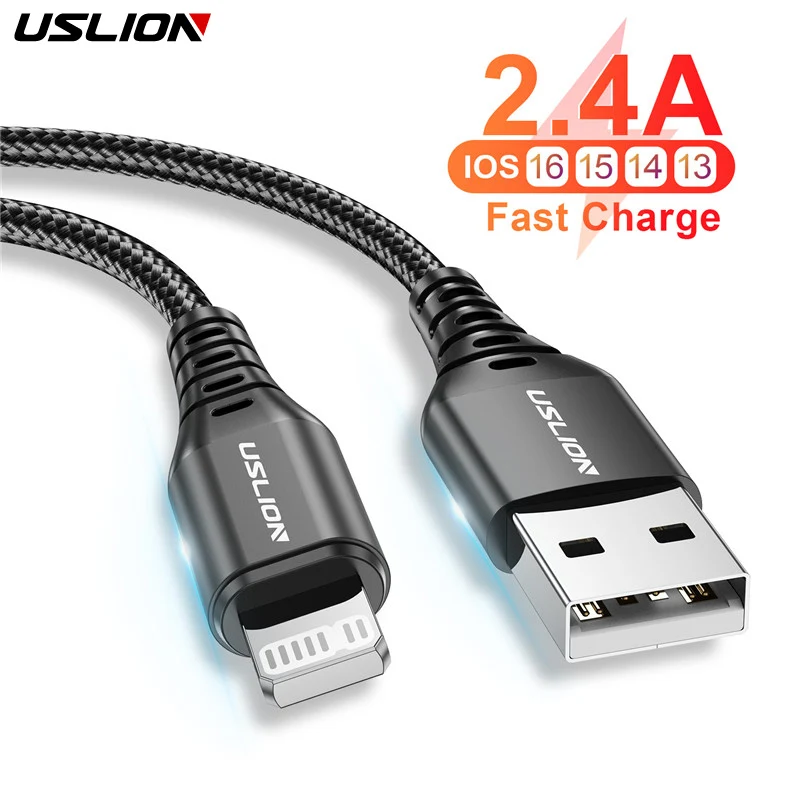 Comprar USLION-Cable USB de carga rápida para iPhone 14, 13, 12, 11 Pro, Max, Xs, Xr, X, 8, 7, 6 Plus