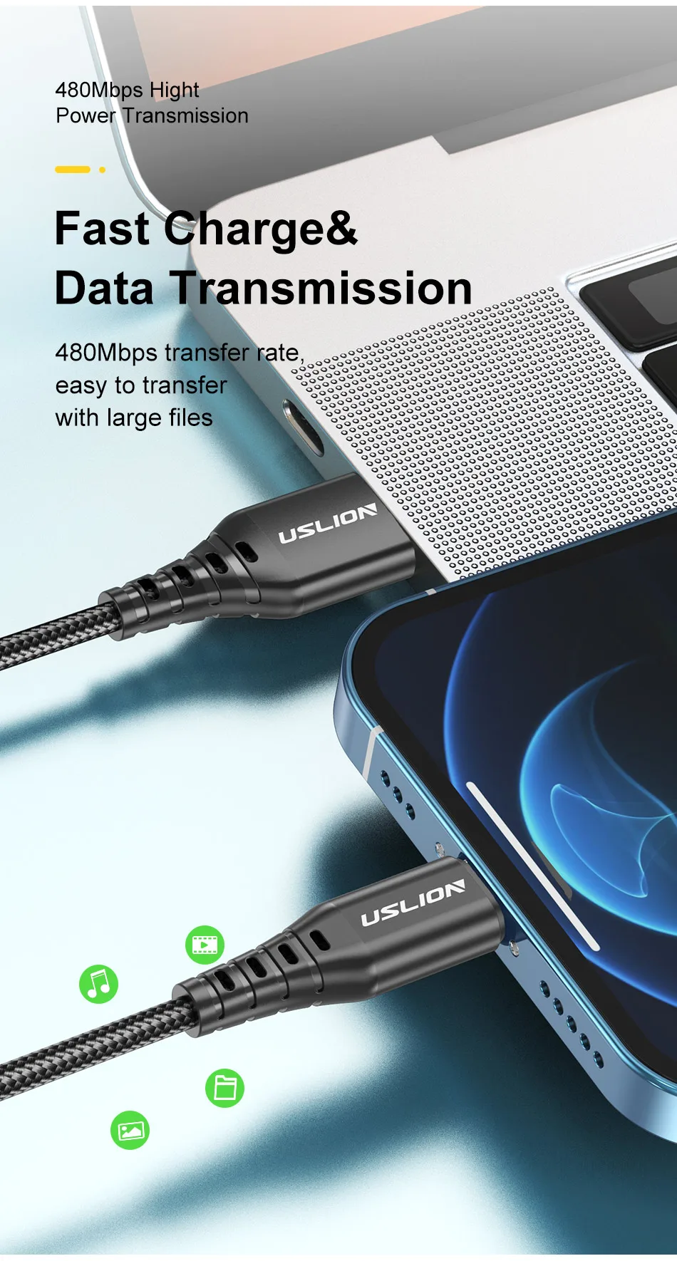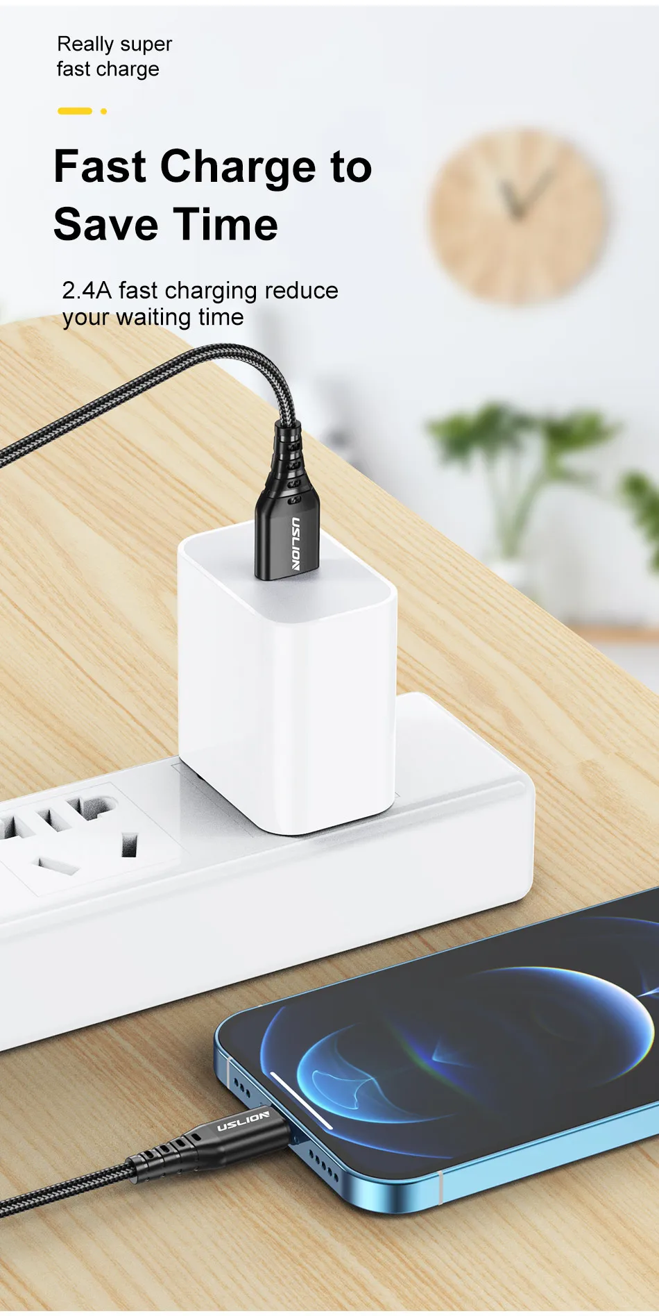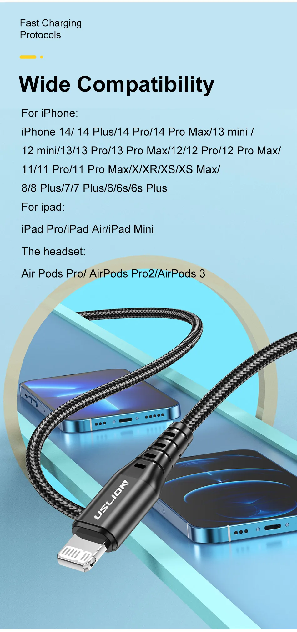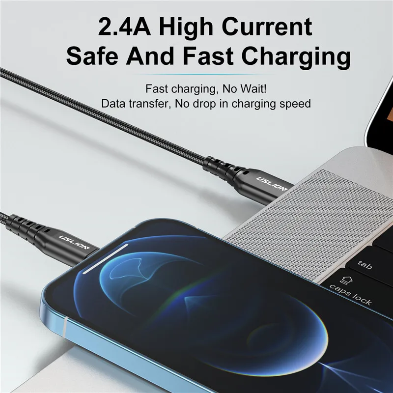 Comprar USLION-Cable USB de carga rápida para iPhone 14, 13, 12, 11 Pro, Max, Xs, Xr, X, 8, 7, 6 Plus