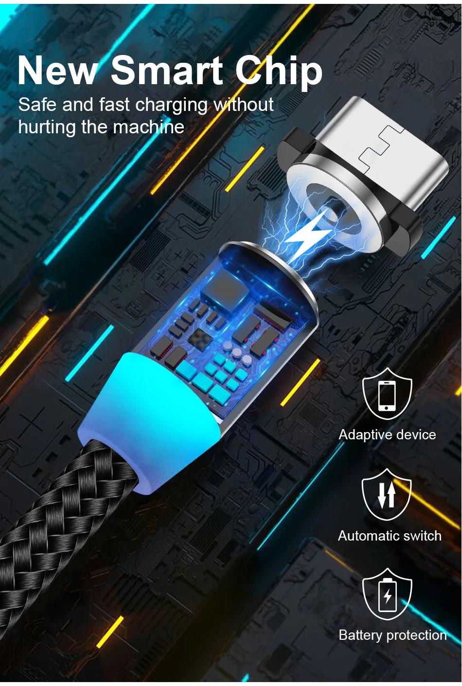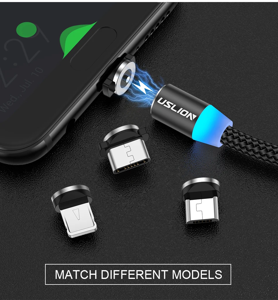 Comprar USLION-Cable USB magnético para iPhone 14, 13, Xiaomi, Samsung, Cable tipo C LED, carga rápida de datos, Cable Micro USB