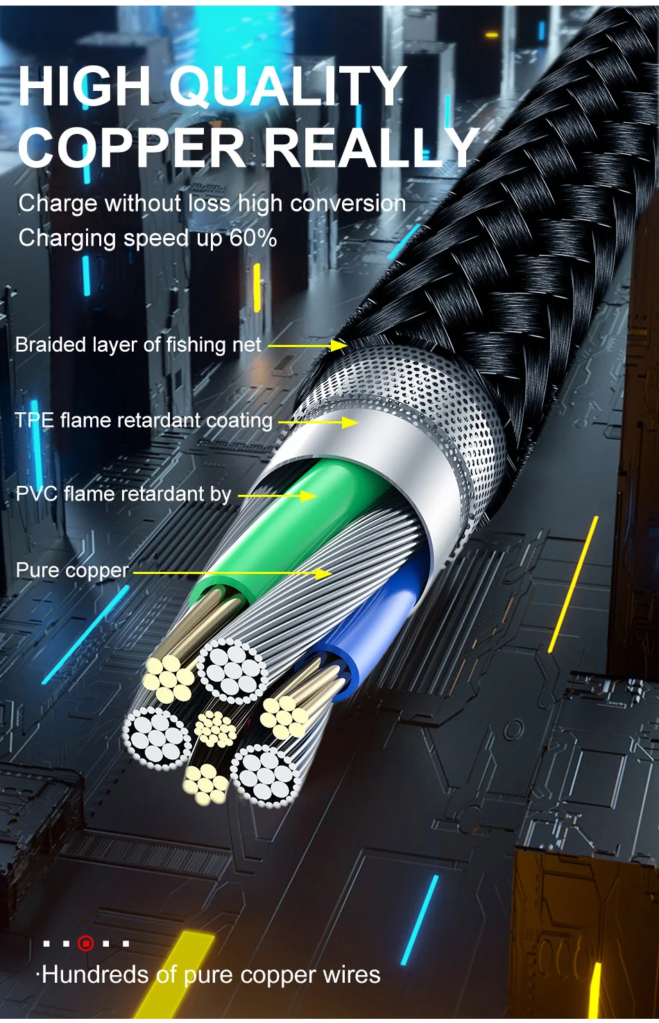 Puerto de Metal + alambre trenzado de nailon, hace que el producto sea duradero y resiste el kinkd y los enredos.