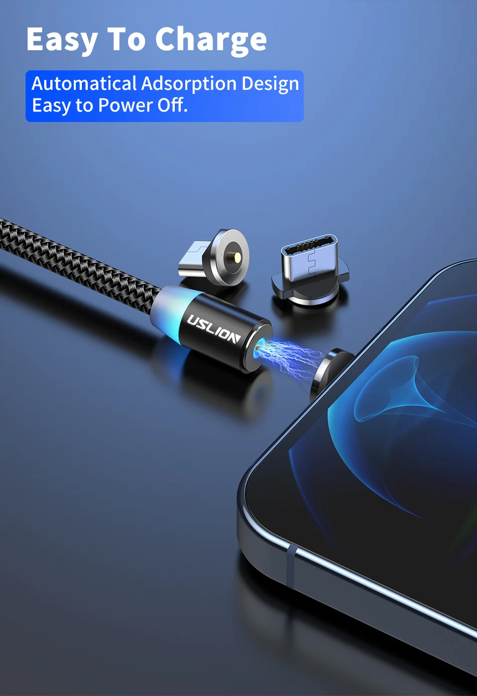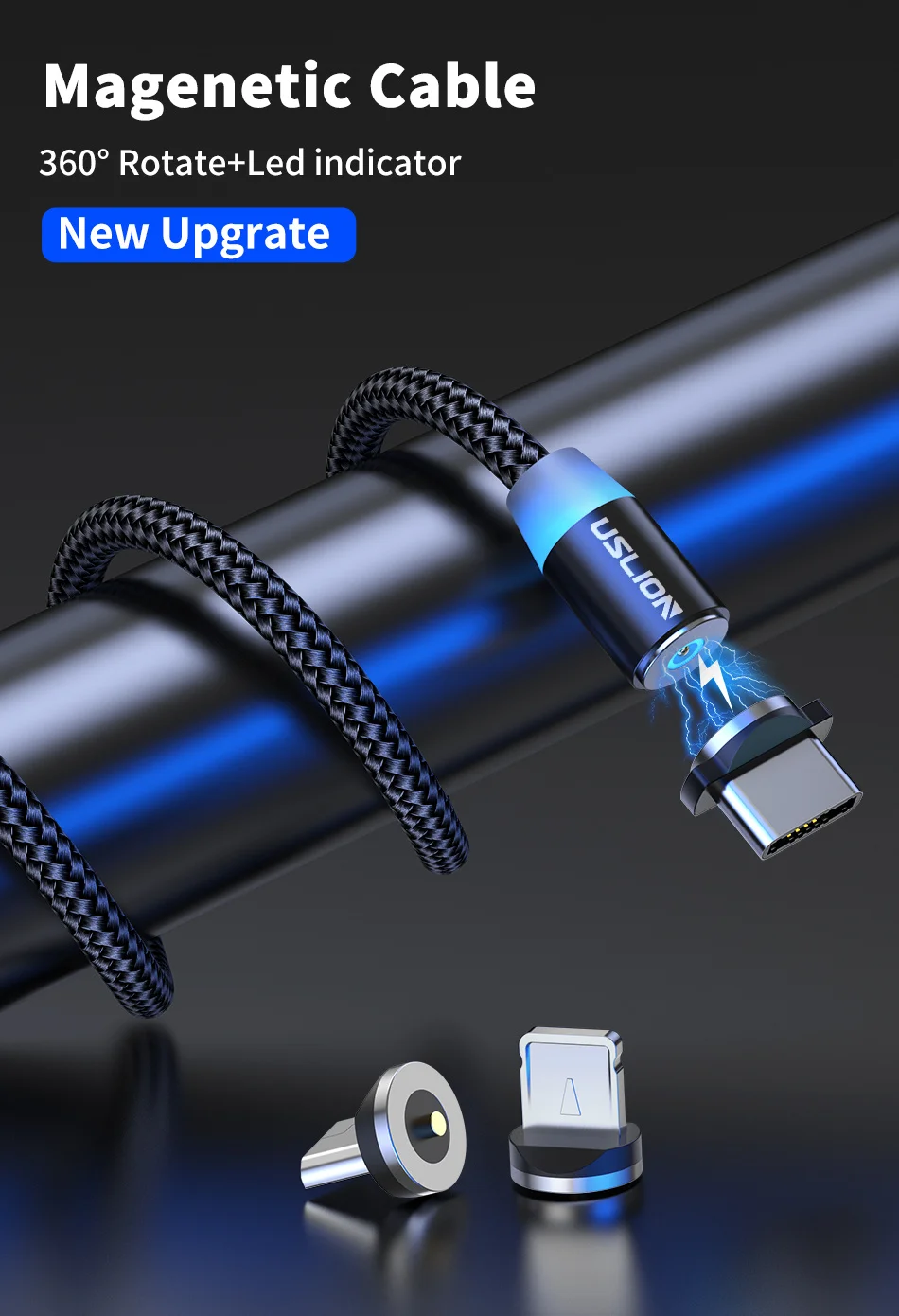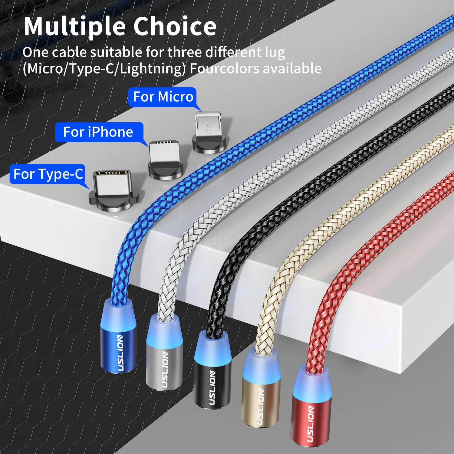 Comprar USLION-Cable USB magnético LED, Cable de carga tipo C para iPhone 12 11, Xiaomi, Samsung, cargador magnético Micro, 1m, 2m