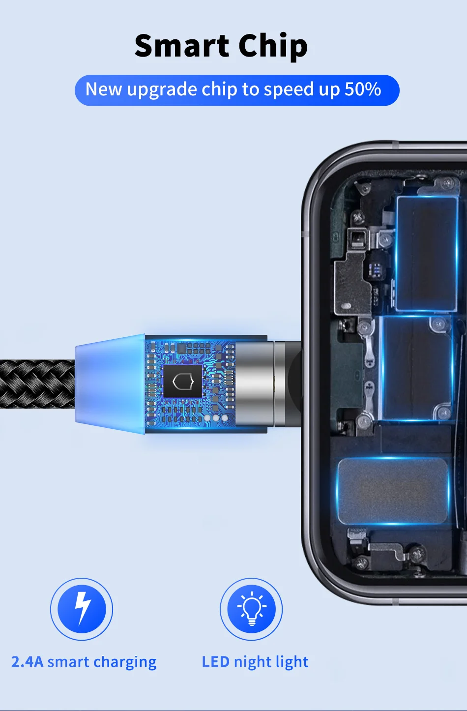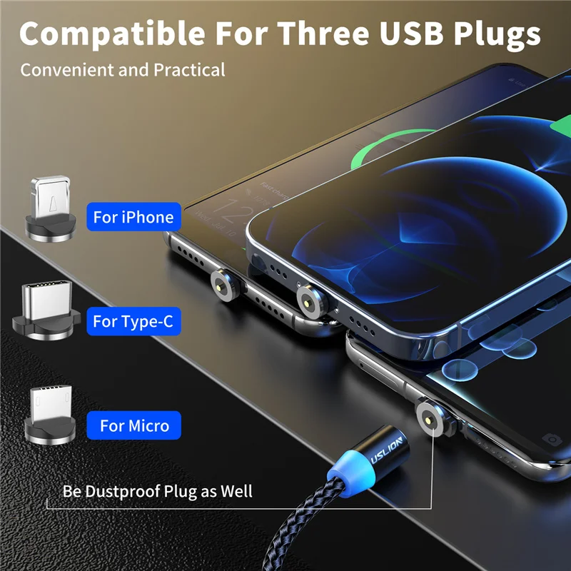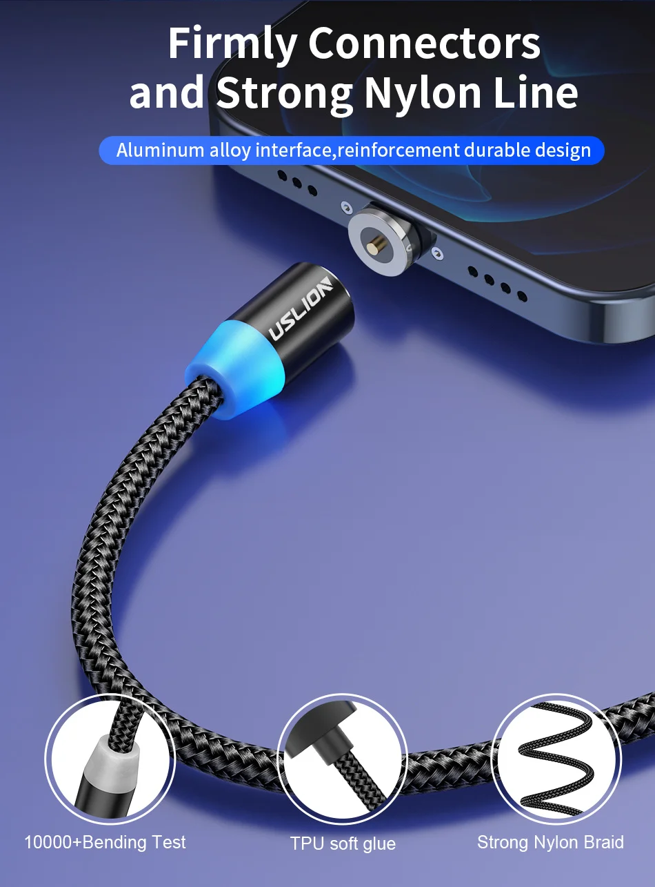 Comprar USLION-Cable USB magnético LED, Cable de carga tipo C para iPhone 12 11, Xiaomi, Samsung, cargador magnético Micro, 1m, 2m