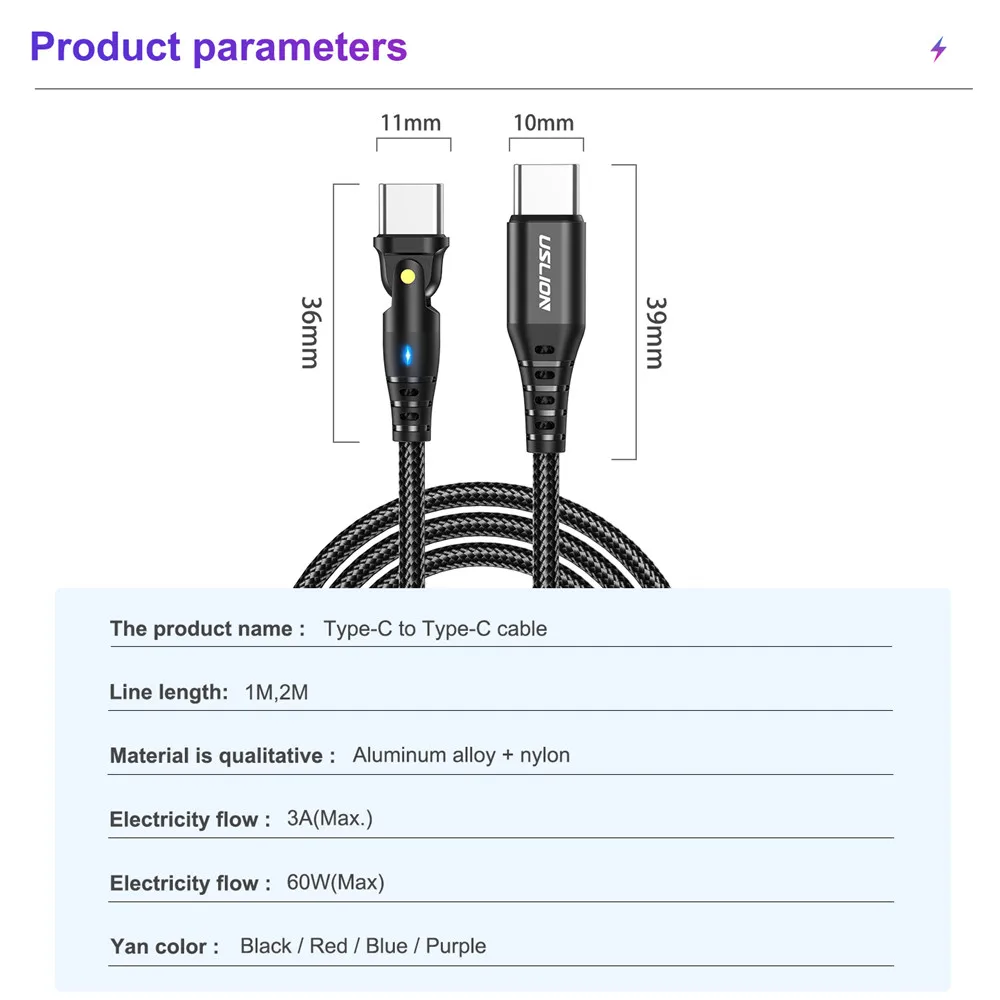 Comprar USLION-Cable USB tipo C a USB C, cargador de carga rápida, USB-C PD, 60W, para Samsung A53, A52, S22, Xiaomi