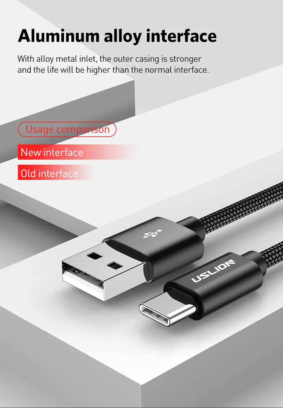USLION-Cable USB tipo C de carga rápida 3A, Cable de datos, cargador de teléfono para Samsung S23 S21 xiaomi mi 13 Huawei POCO OPPO Realme