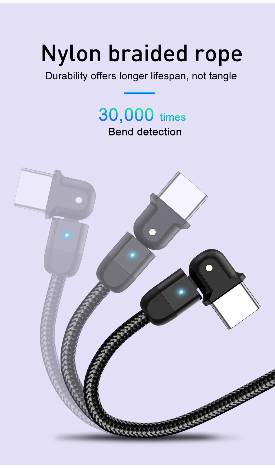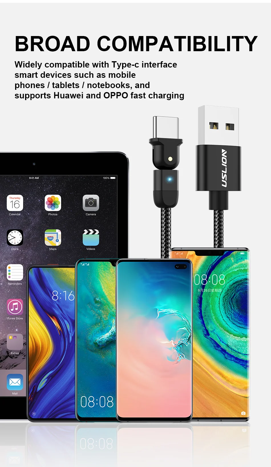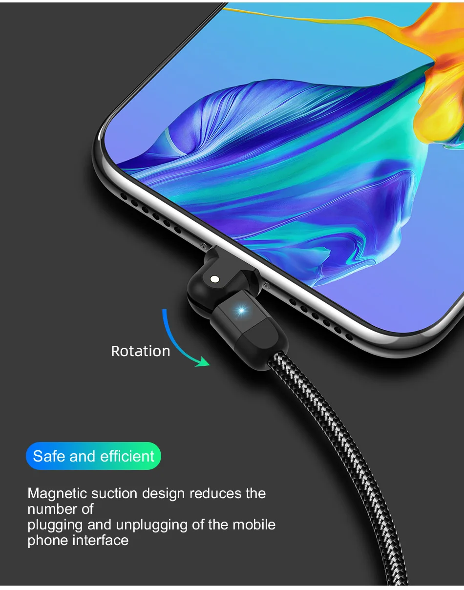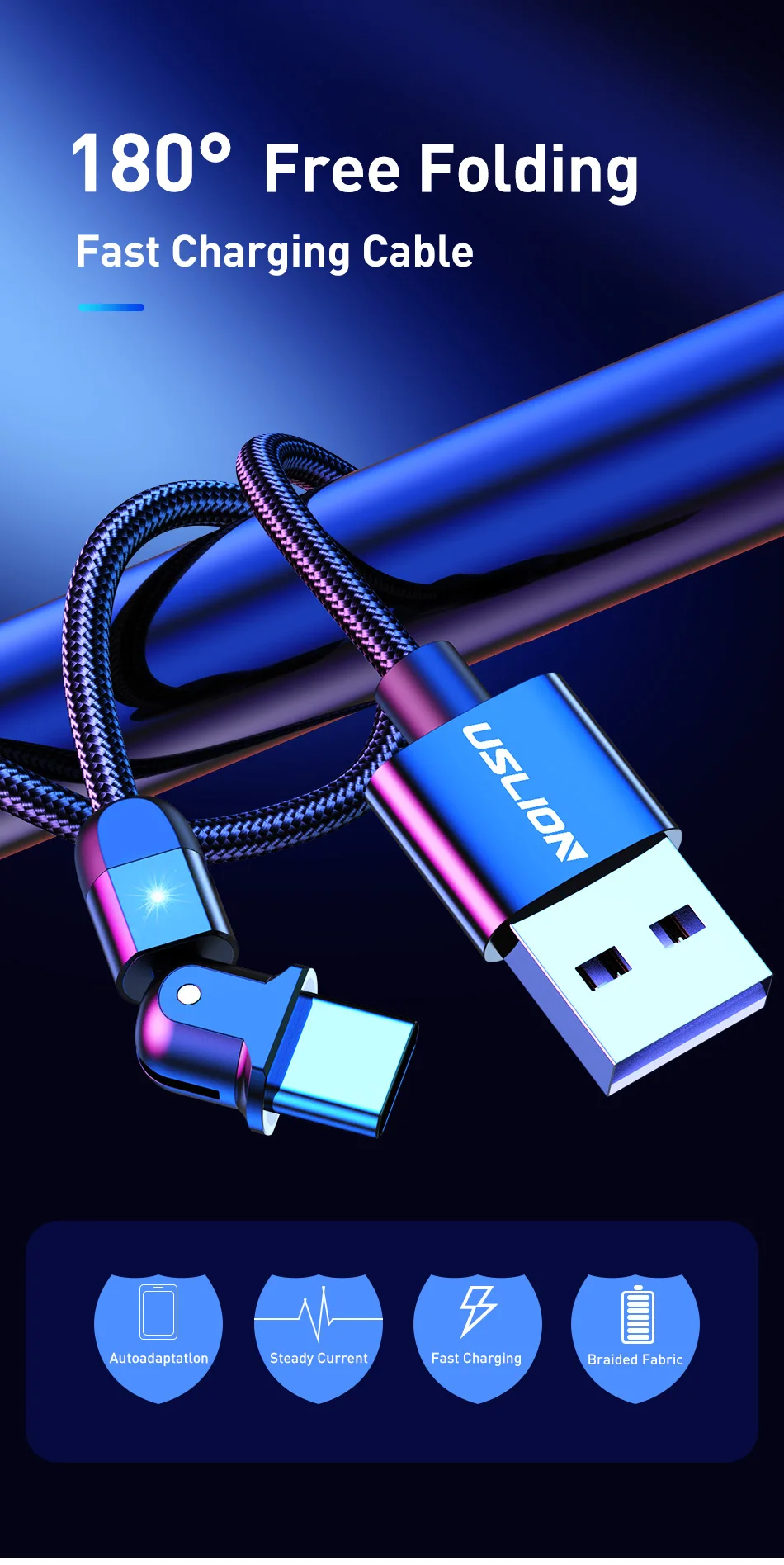 USLION-Cable USB tipo C de carga rápida para teléfono móvil, Cable de datos con rotación de 180 grados, 3A, USB-C, para Samsung S22 Plus, Xiaomi, Huawei