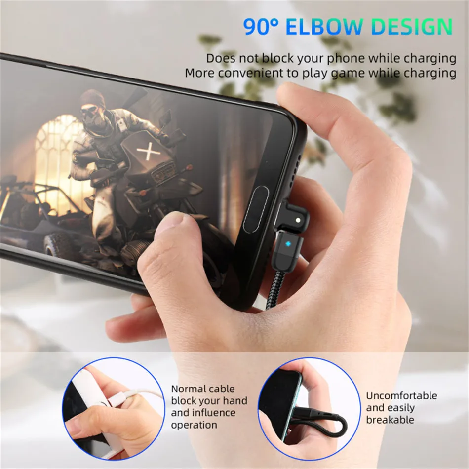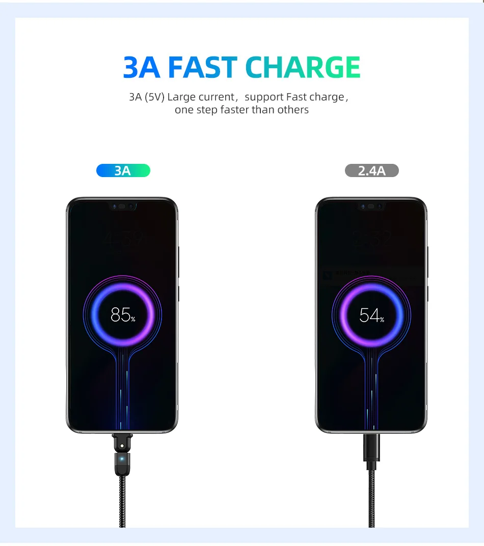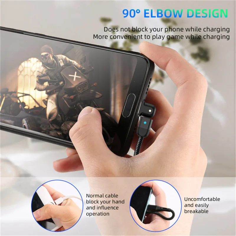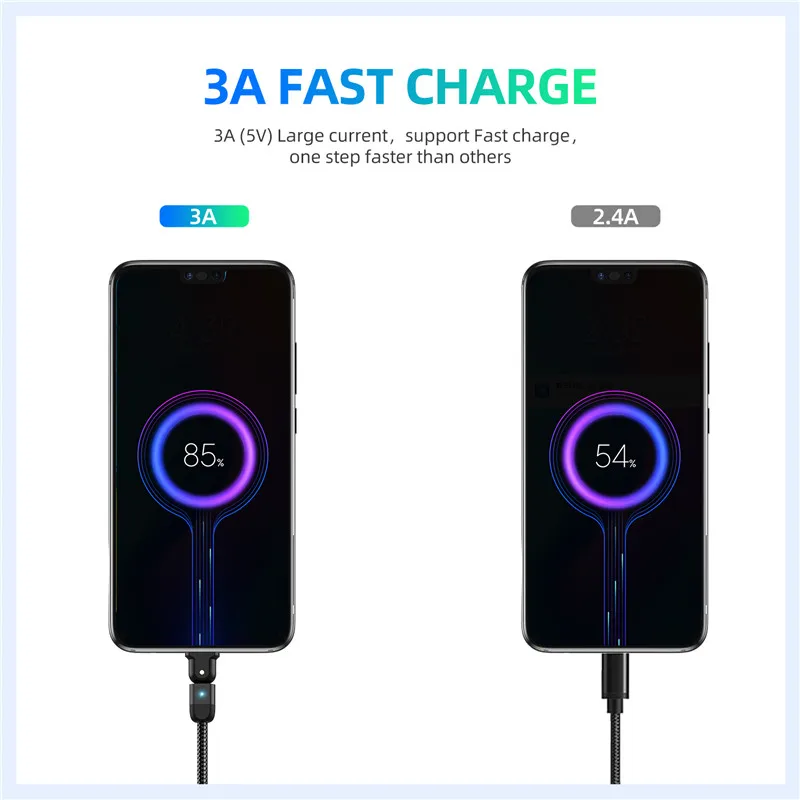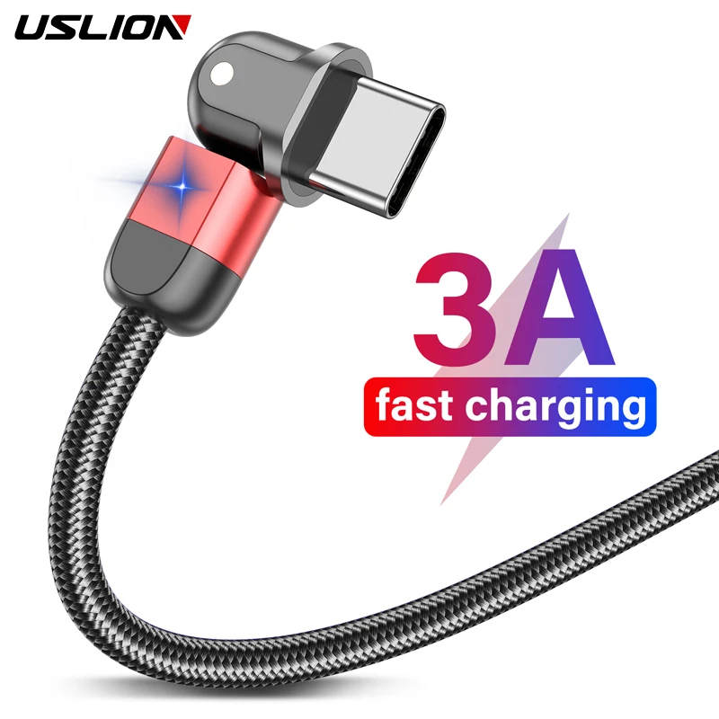 Comprar USLION-Cable USB tipo C de carga rápida para teléfono móvil, Cable de datos con rotación de 180 grados, 3A, USB-C, para Samsung S22 Plus, Xiaomi, Huawei