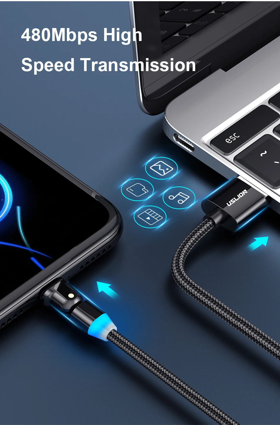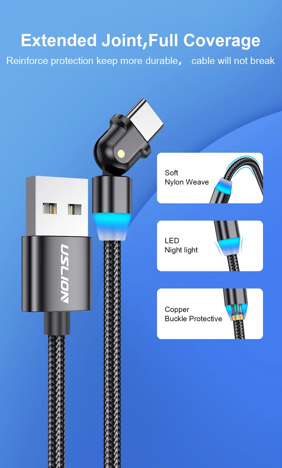 Comprar USLION-Cable USB tipo C para teléfono móvil, cargador USB-C de carga rápida, para Samsung Galaxy S9, S8, Huawei Mate 20, Xiaomi