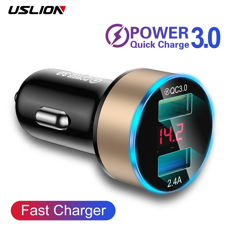 Comprar USLION-cargador rápido de coche para teléfono móvil, adaptador Universal Dual Usb para iPhone 11 Pro Max, Mini adaptador para Xiaomi y Samsung