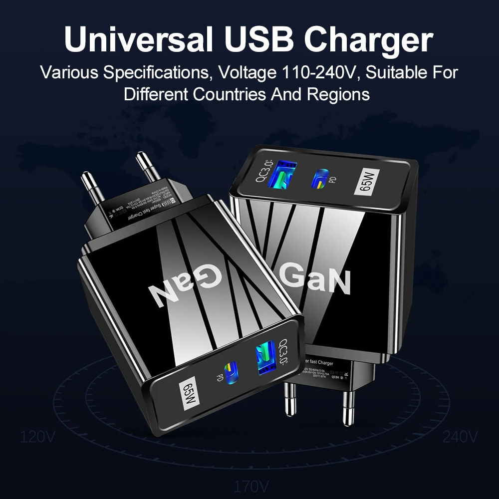 Comprar USLION-cargador rápido GaN para tableta y portátil, adaptador de enchufes de especificación coreana, tipo C, PD, 65W, para iPhone y Samsung
