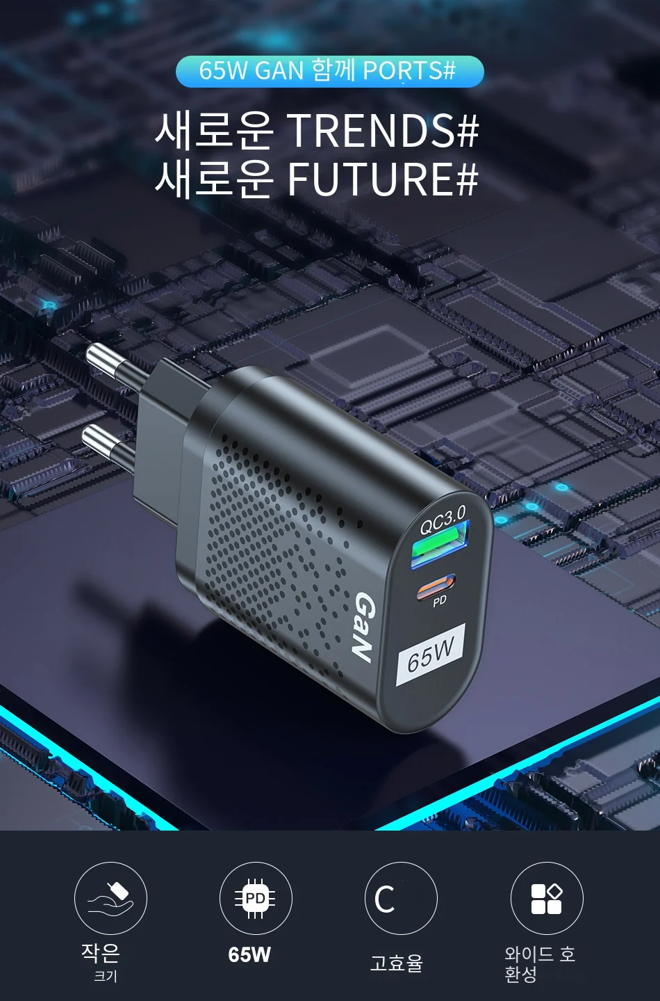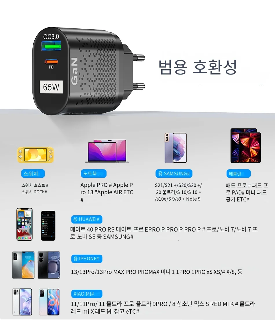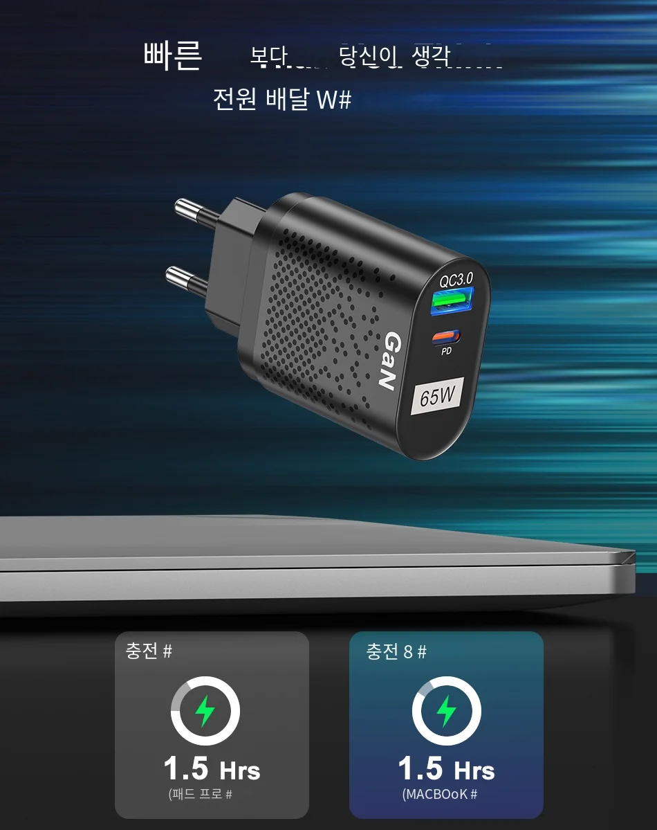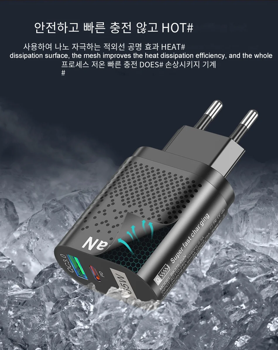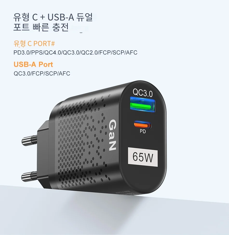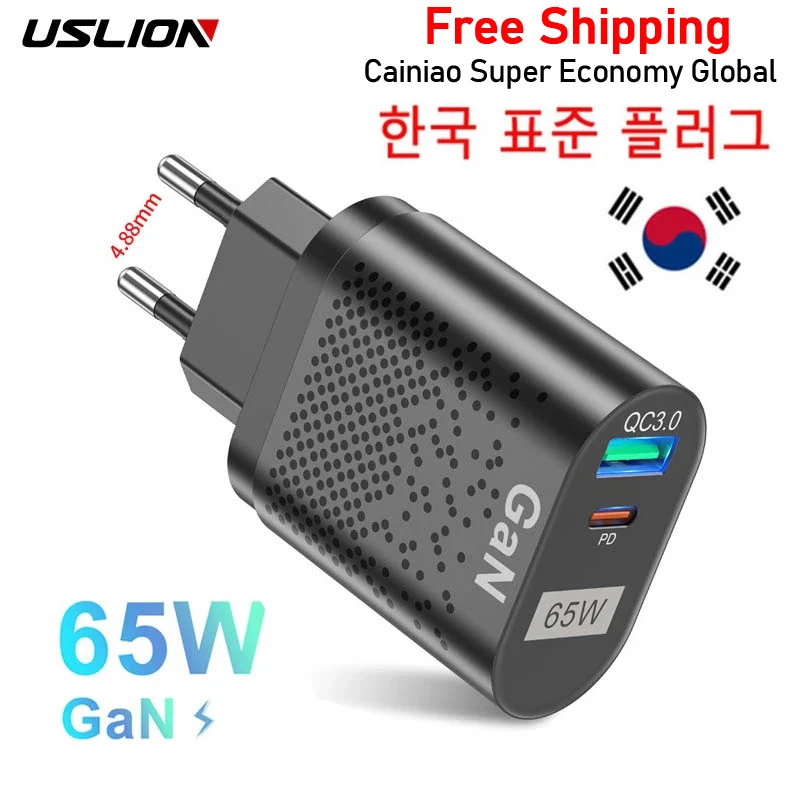 Comprar USLION-cargador rápido GaN para tableta y portátil, adaptador de enchufes de especificación coreana, tipo C, PD, 65W, para iPhone y Samsung