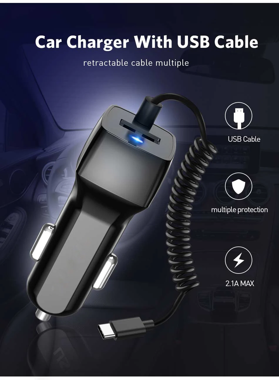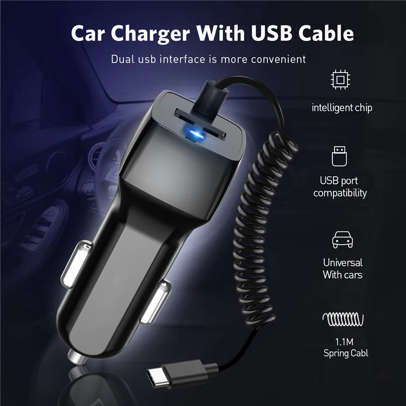 Comprar USLION-cargador de teléfono USB para coche Samsung S10 S9 Plus, Cable Micro USB tipo C, carga rápida para Xiaomi, Huawei y SONY