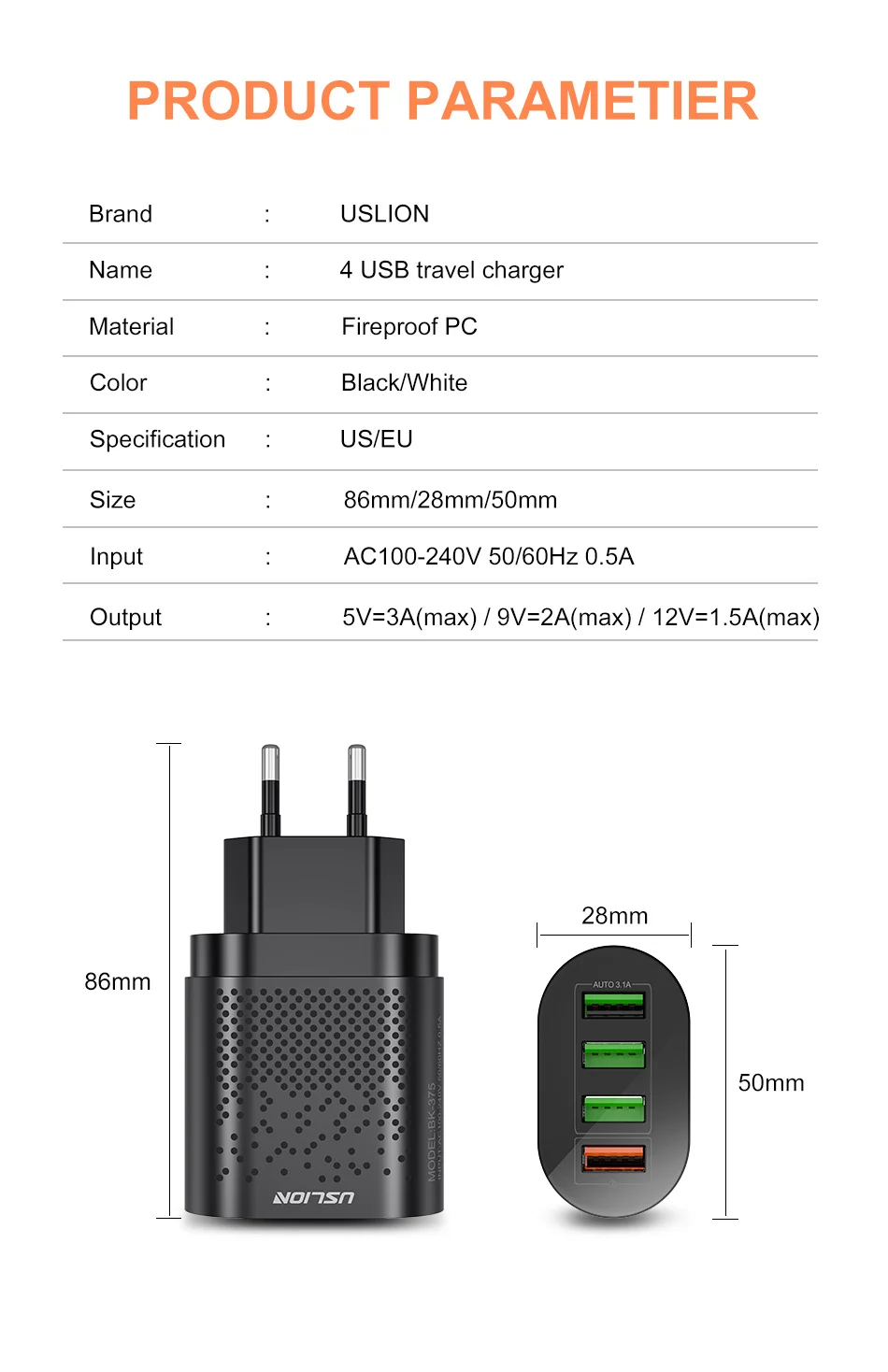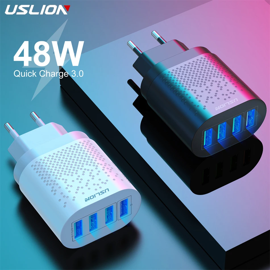 Comprar USLION-cargador USB 3A QC3.0 para teléfono móvil, cargador de pared rápido con 4 puertos, 48W, para iPhone 14, Samsung, Xiaomi, EU/US/AU/KR/UK