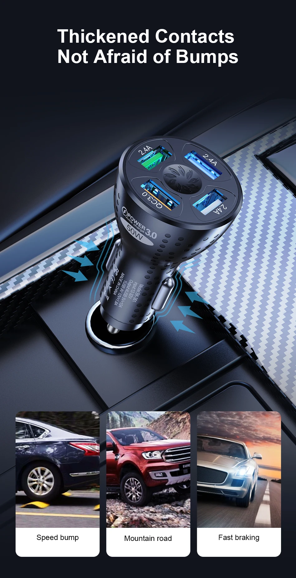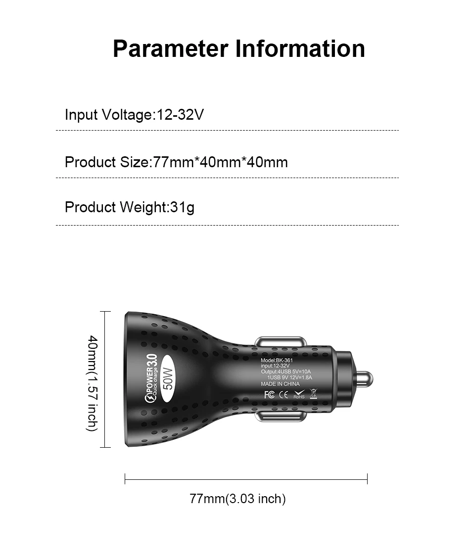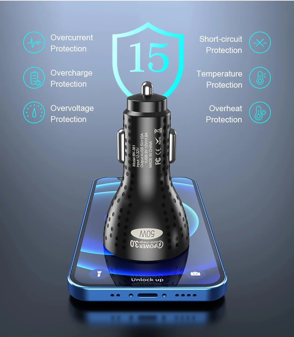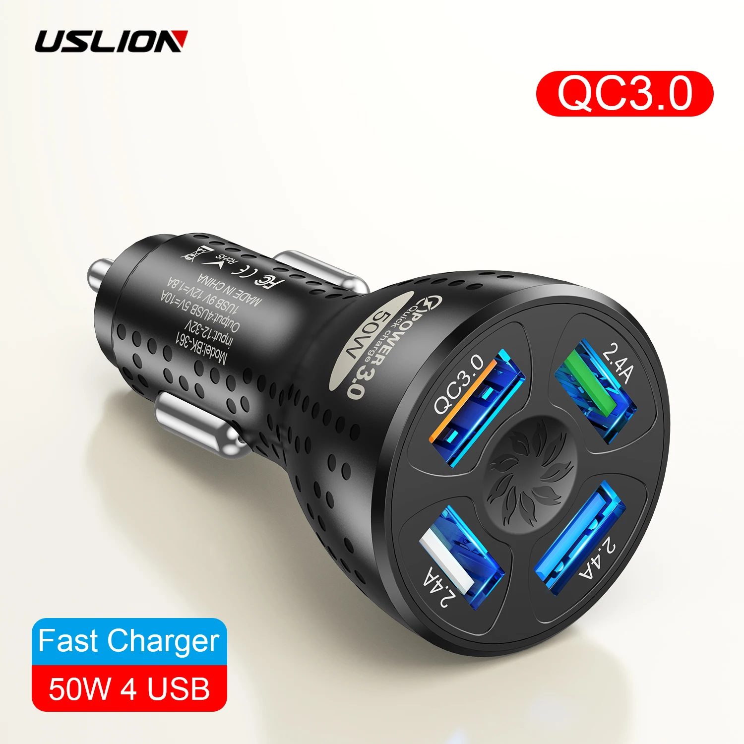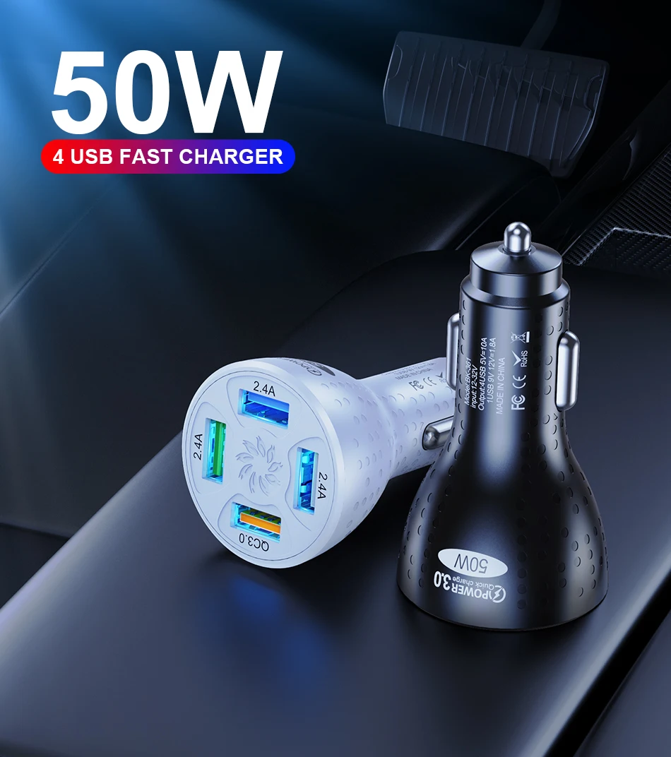Comprar USLION-cargador USB de 4 puertos para coche, dispositivo de carga rápida QC 3,0, para iPhone 14, 13 Pro, Max, 12 Xiaomi, POCO M5, 50W