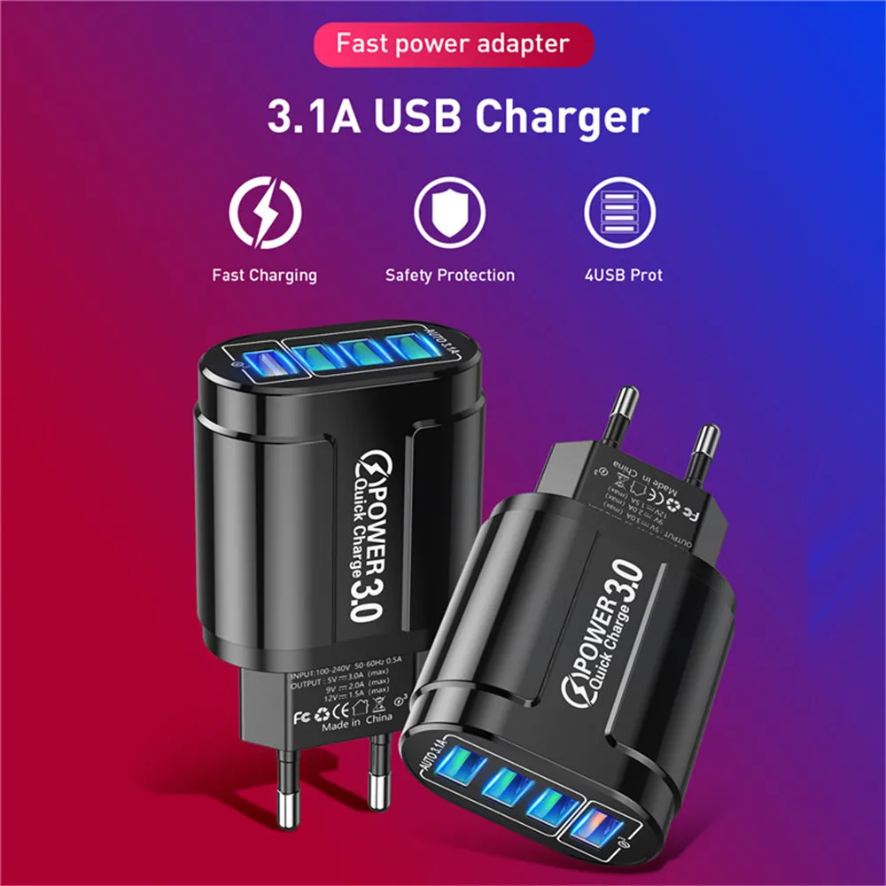 Comprar USLION-cargador USB de 48W, dispositivo de carga rápida QC 3,0, de pared, para iPhone 14, Samsung, Xiaomi, móvil, 4 puertos, adaptador de enchufe europeo, de viaje, 2 uds.