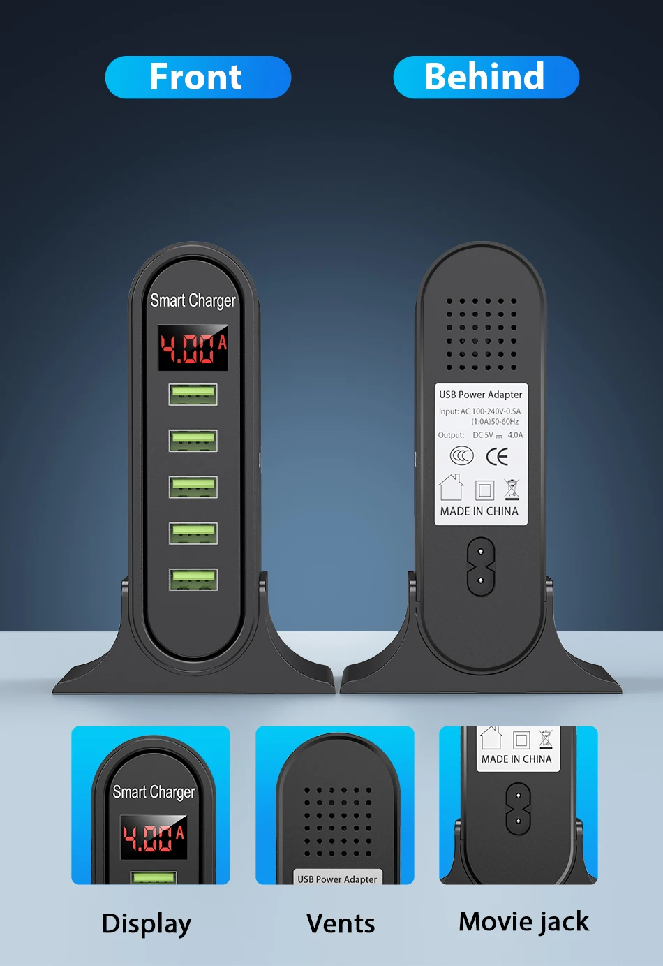 Comprar USLION-cargador USB de 5 puertos para Xiaomi, estación de carga multiusb con pantalla LED, Teléfono Universal, escritorio, pared, hogar, enchufe UE, EE. UU., Reino Unido