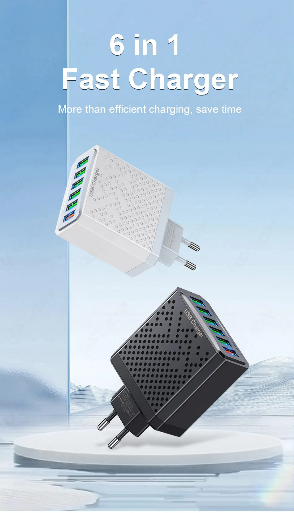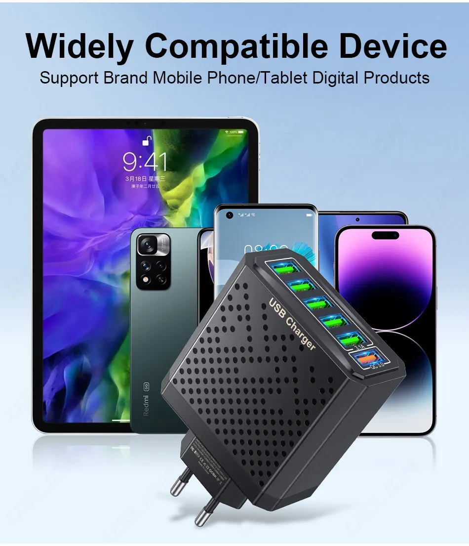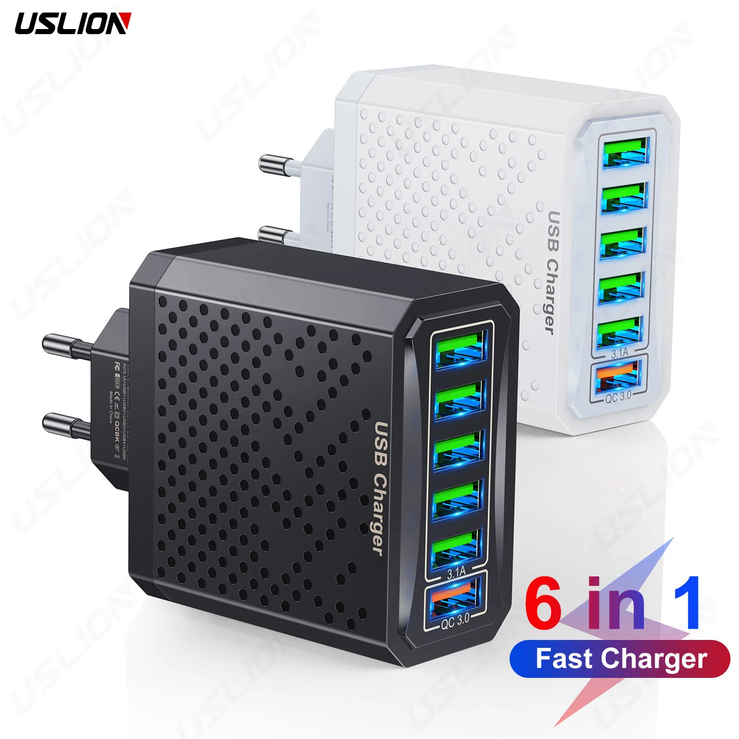 Comprar USLION-cargador USB de 6 puertos, carga rápida QC3.0, cargador de viaje para iPhone 15, Samsung, Xiaomi, adaptador para teléfono móvil, enchufe UE/KR/EE. UU./Reino Unido