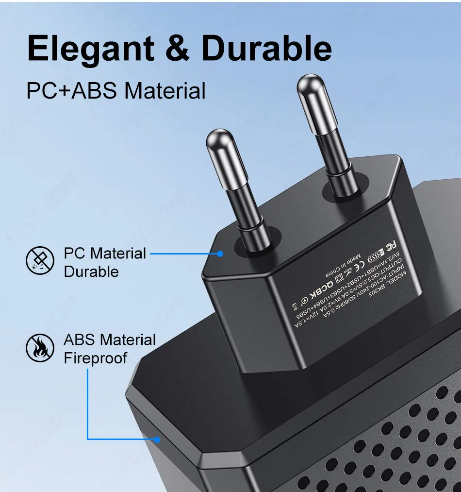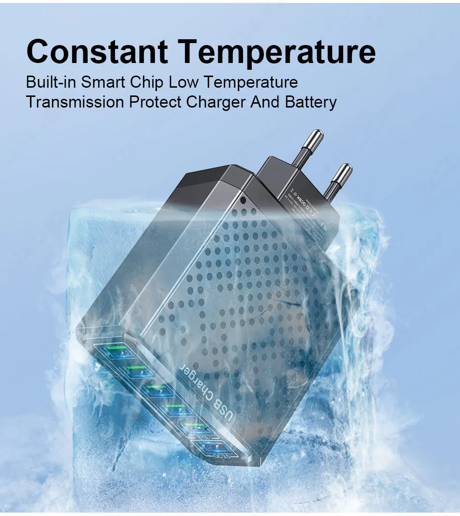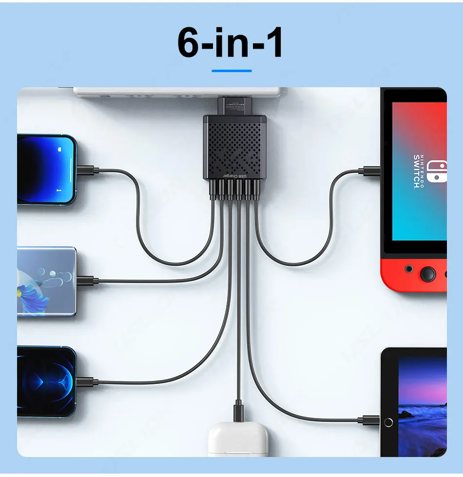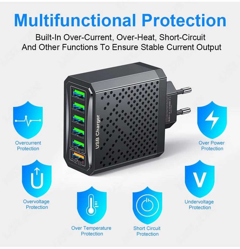 Comprar USLION-cargador USB de 6 puertos, carga rápida QC3.0, cargador de viaje para iPhone 15, Samsung, Xiaomi, adaptador para teléfono móvil, enchufe UE/KR/EE. UU./Reino Unido