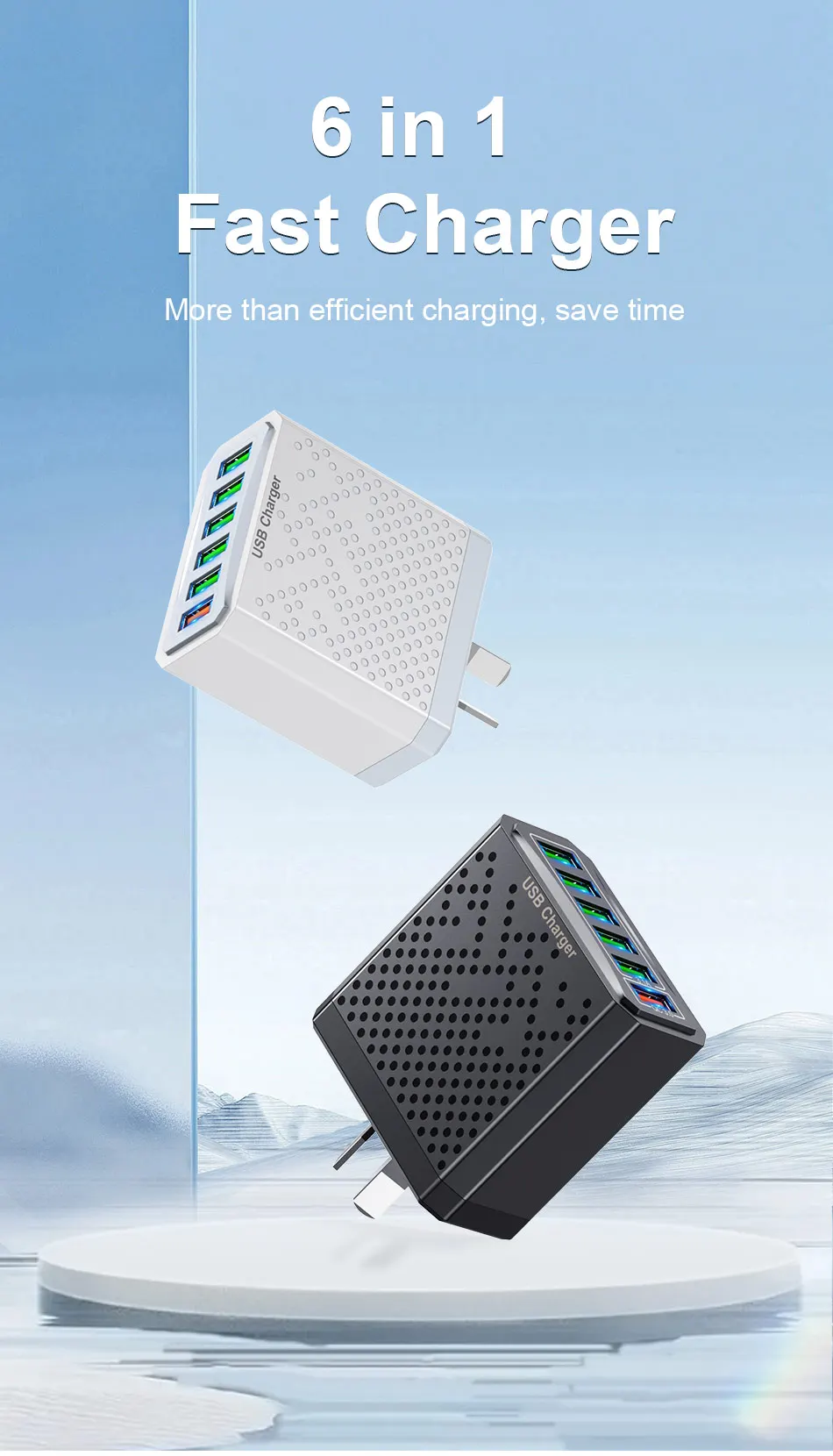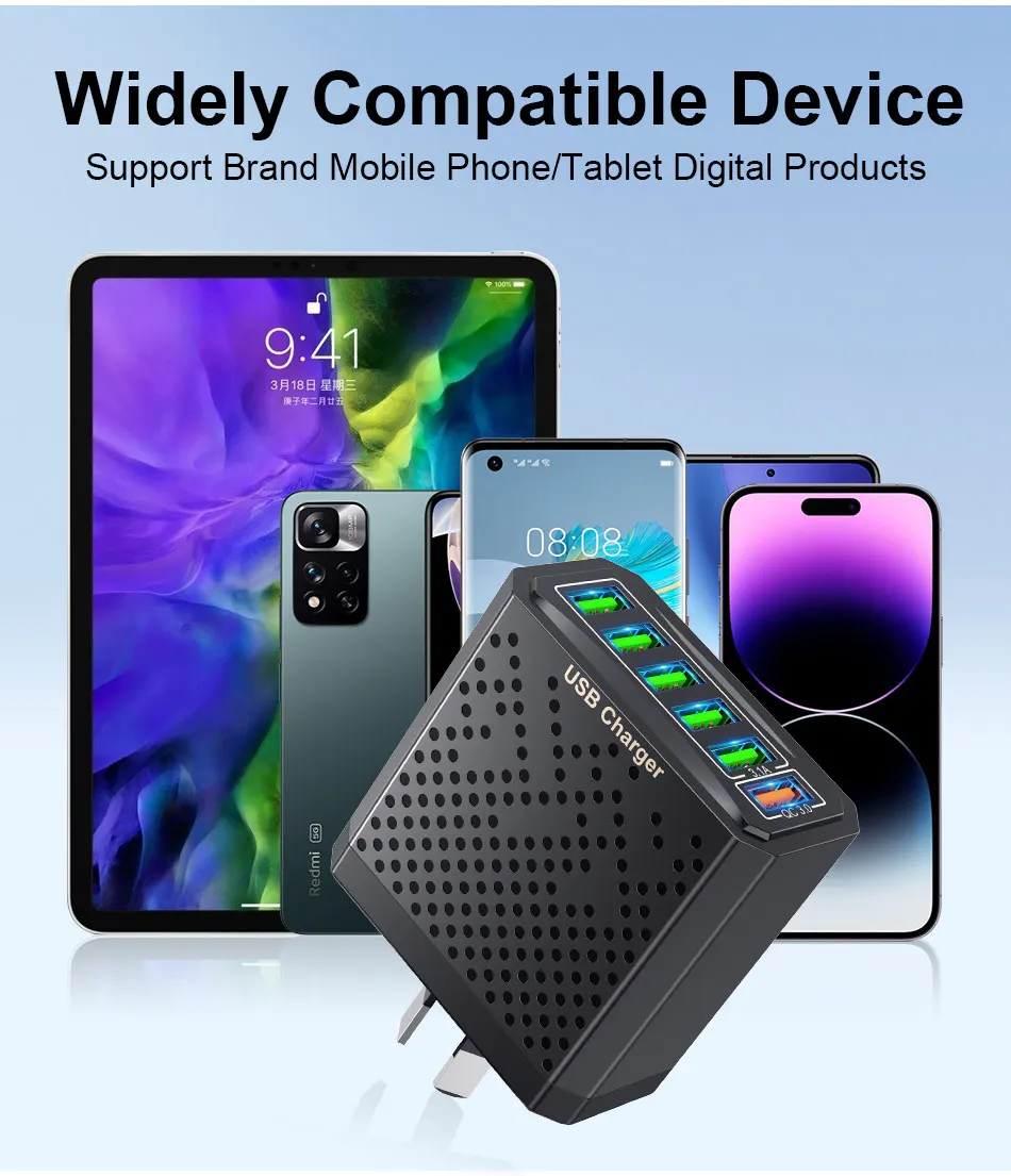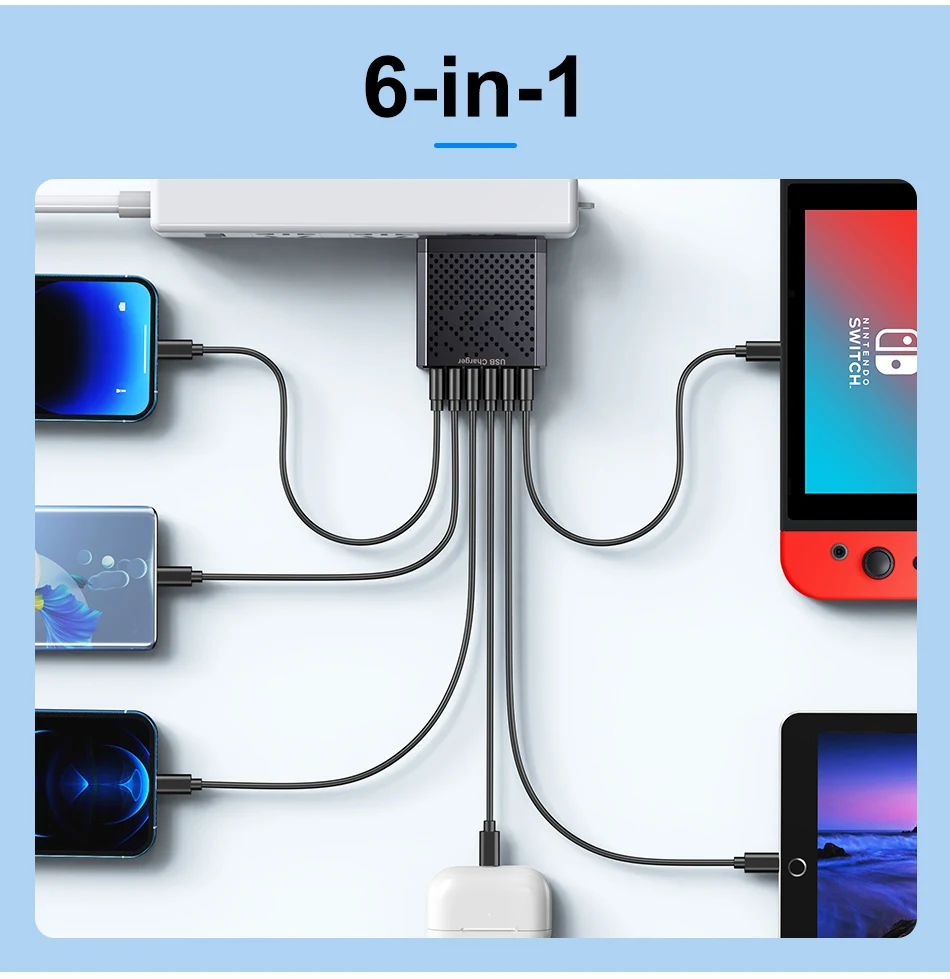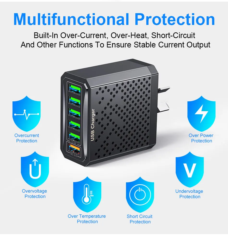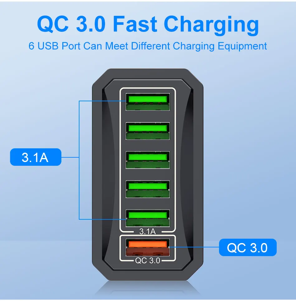 Comprar USLION-cargador USB de 6 puertos, dispositivo de carga rápida 3A, adaptador de viaje para teléfono móvil iPhone 15 14 Poco Xiaomi EU/KR/US/UK/AU