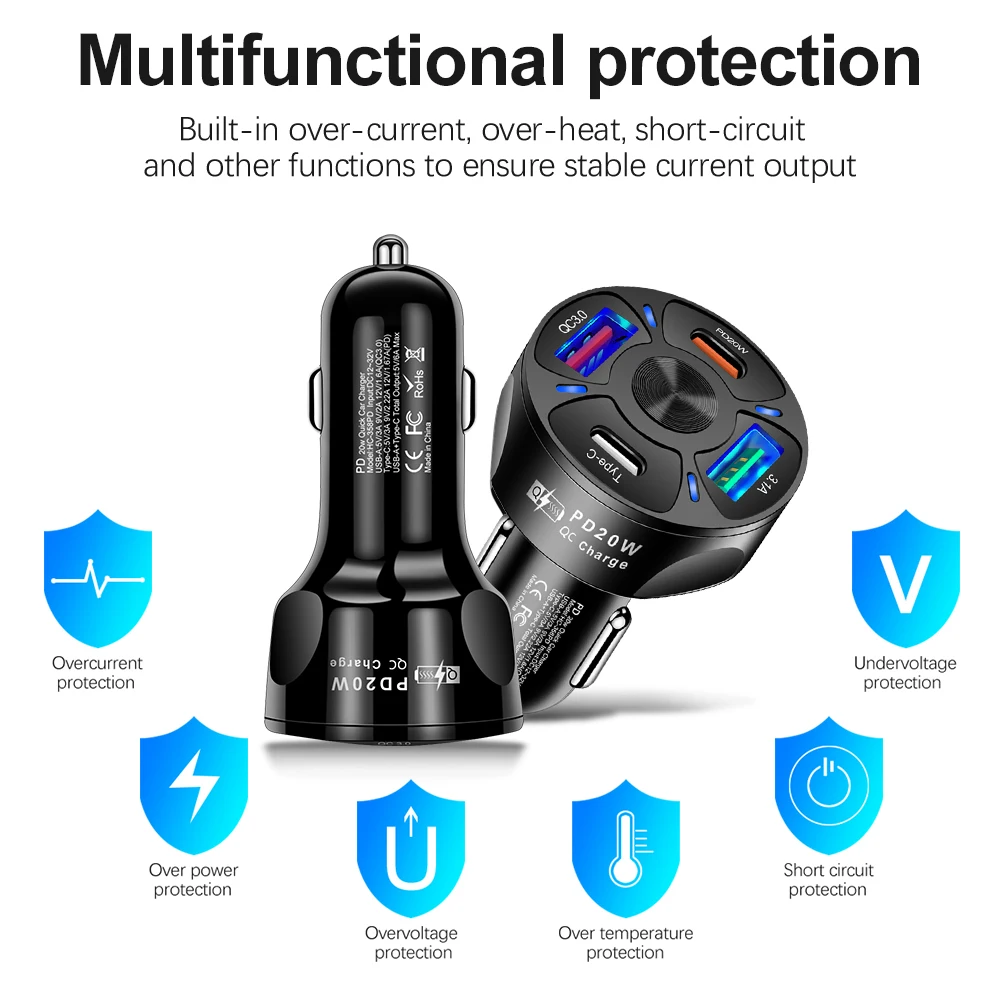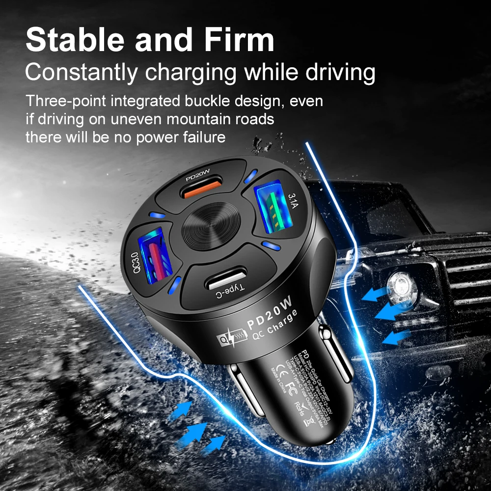 【 2 puertos USB A + 2 puertos USB C Cargador rápido para adaptarse a las necesidades de múltiples dispositivos para cargar】