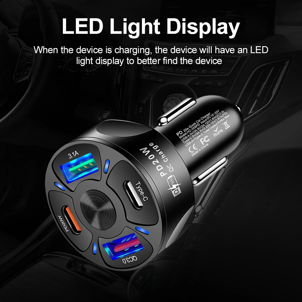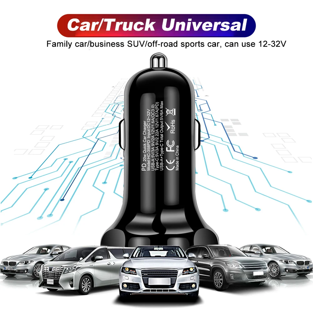 Comprar USLION-cargador USB para coche, adaptador de carga rápida tipo C de 20W para IPhone 15, Samsung, Huawei PD, AFC, SCP, QC 3,0