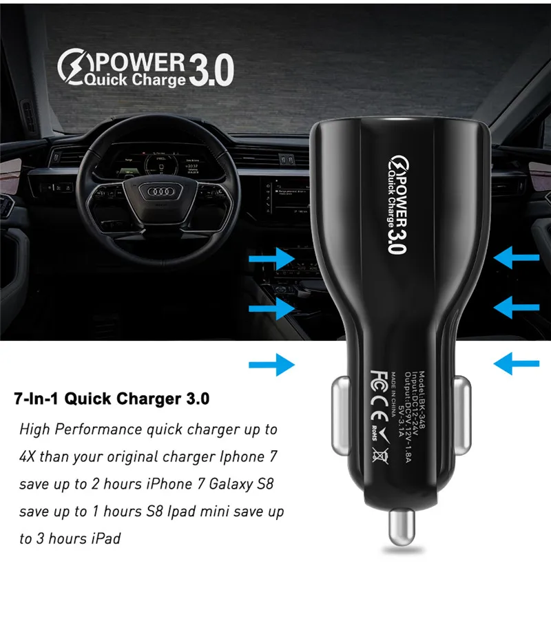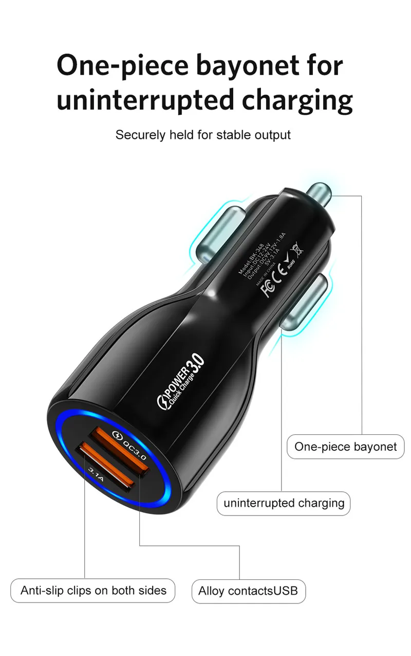 Comprar USLION-cargador USB para coche, dispositivo de carga rápida 3,0, 2,0, para teléfono móvil, 2 puertos, para iPhone 13, 14, XS, Samsung, tableta